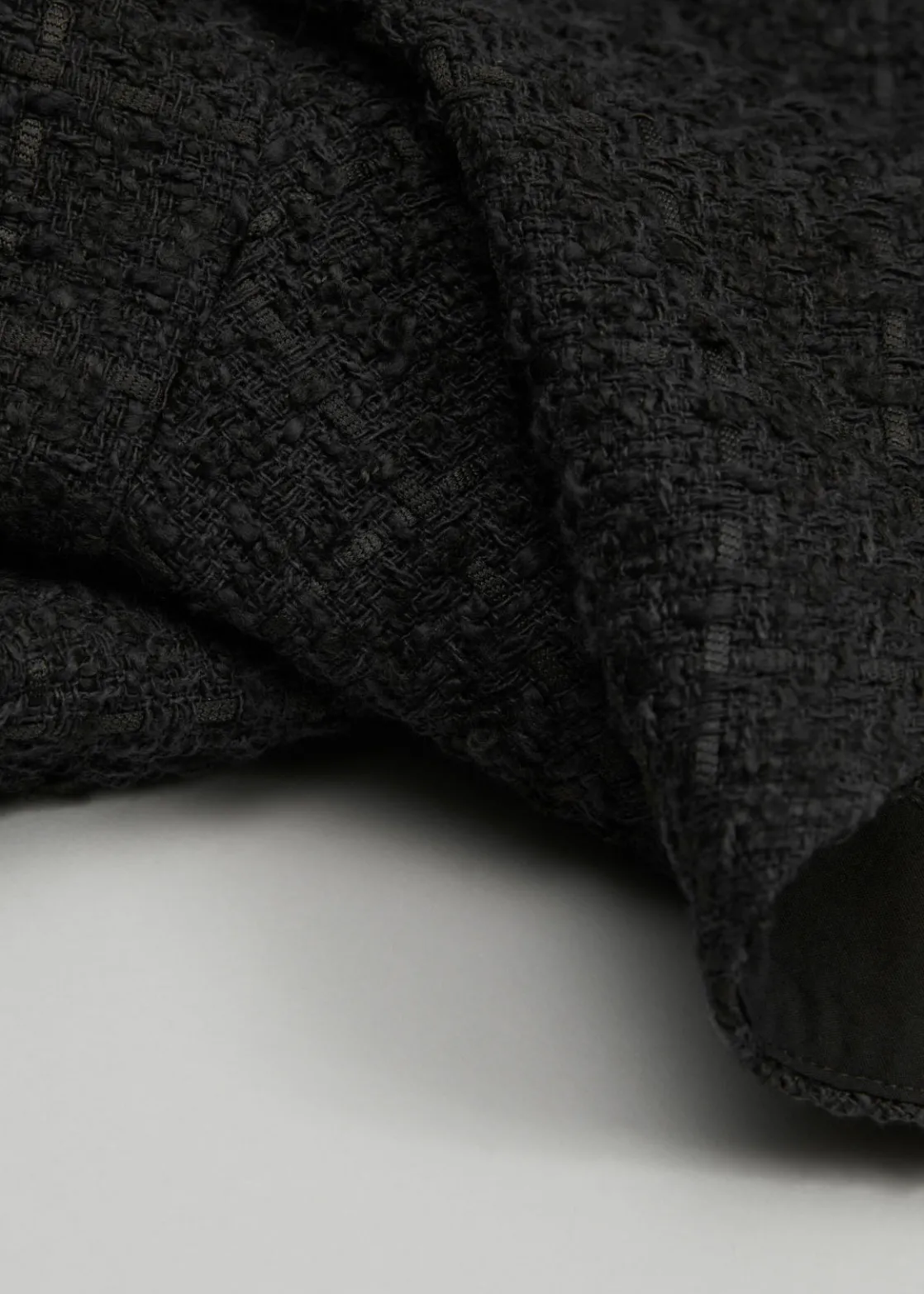 Tweed mini skirt with a tiered, gently ruffled silhouette.
