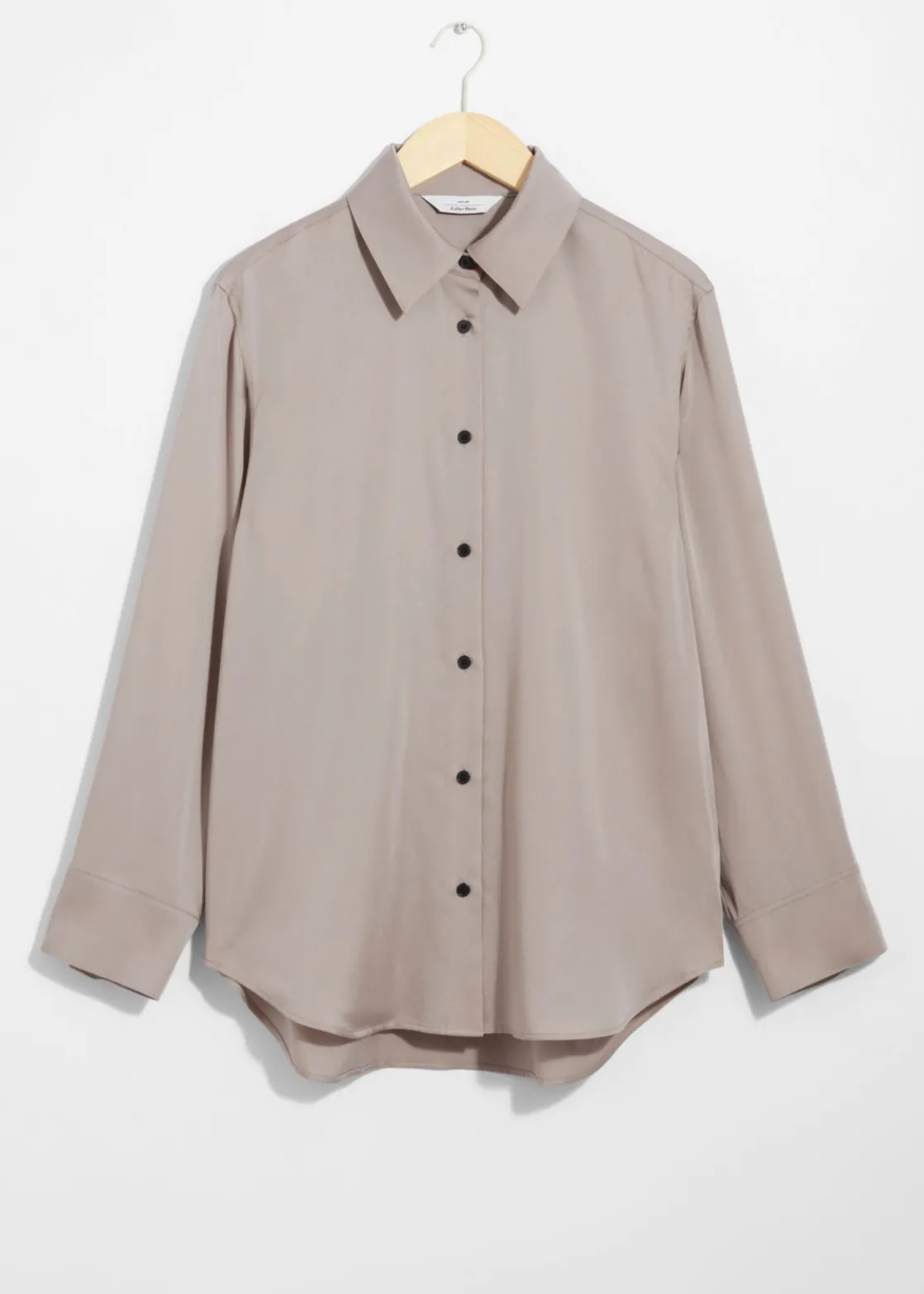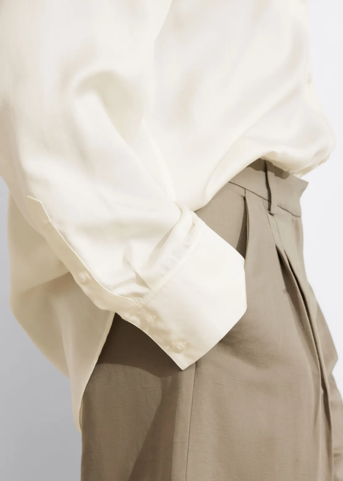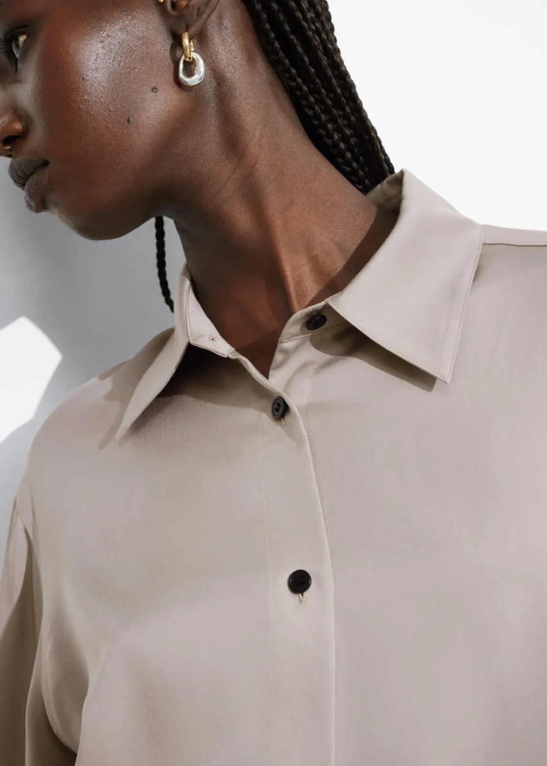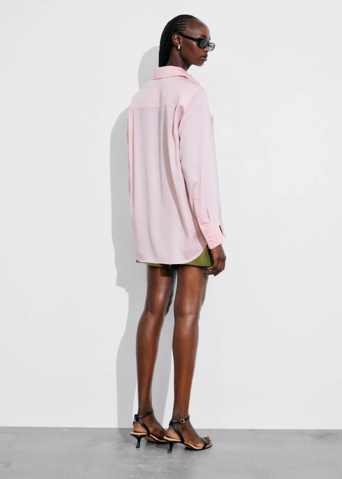 Satin shirt defined by a relaxed silhouette and a slighty longer back.