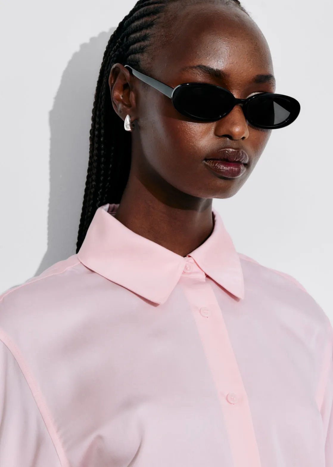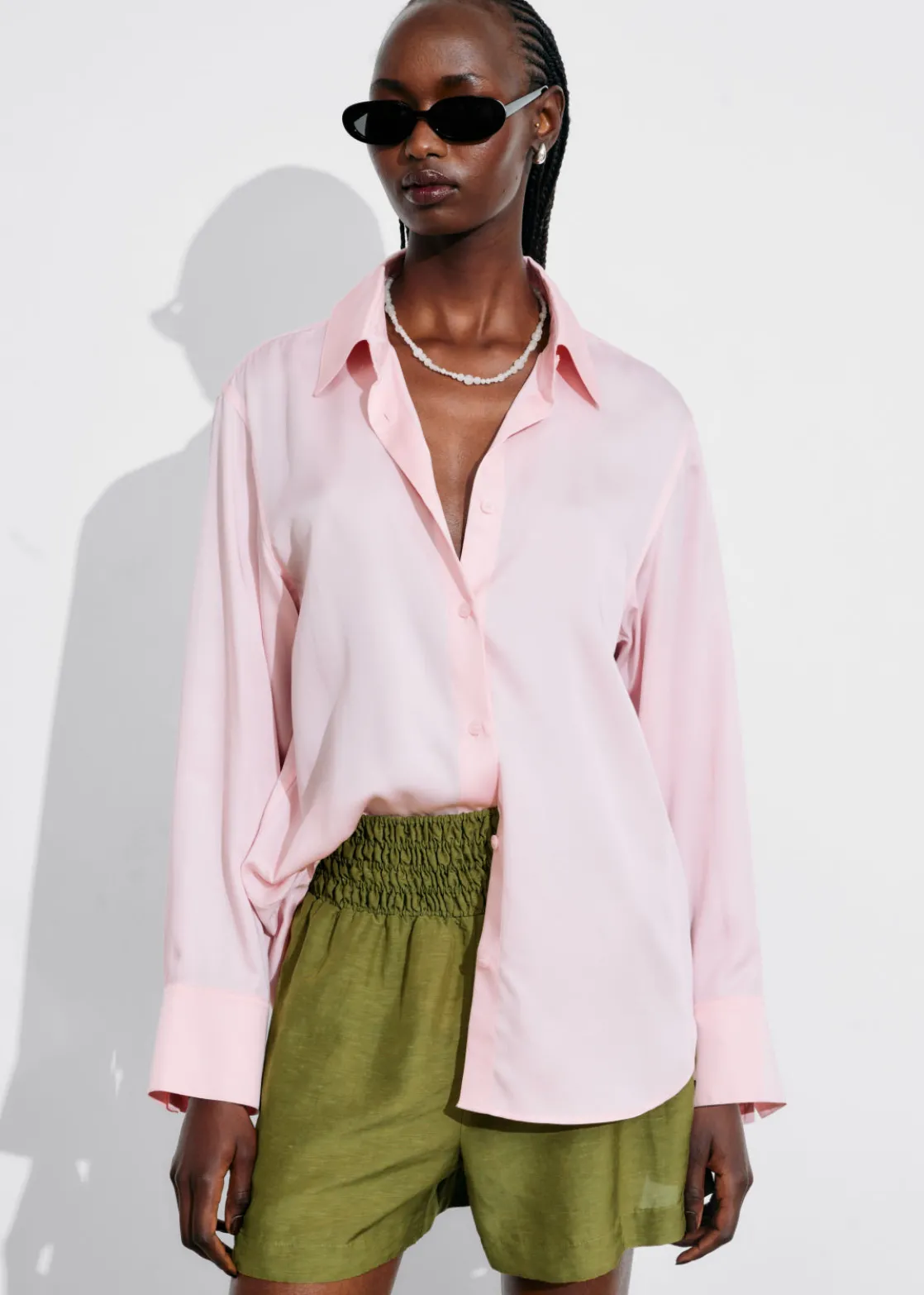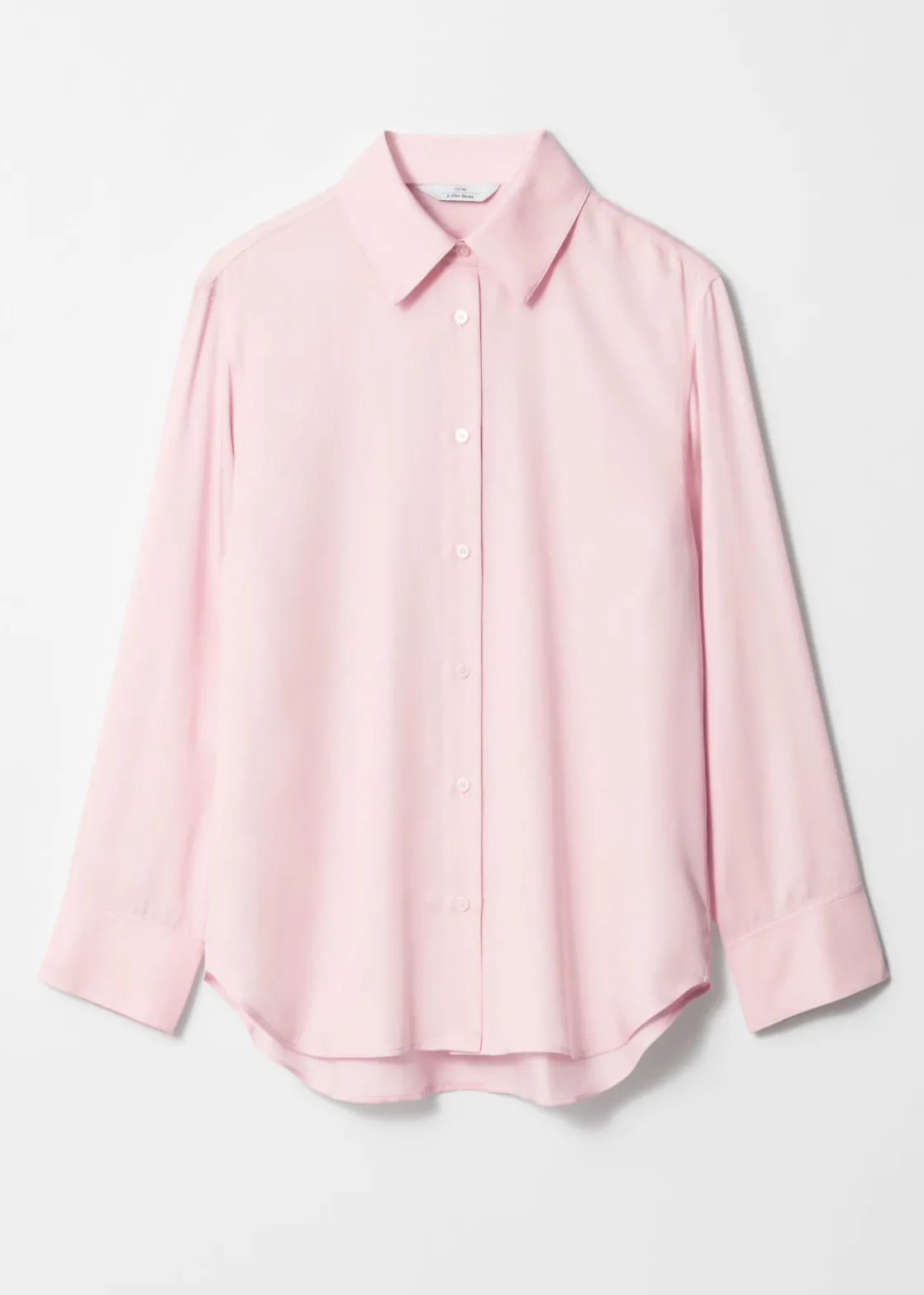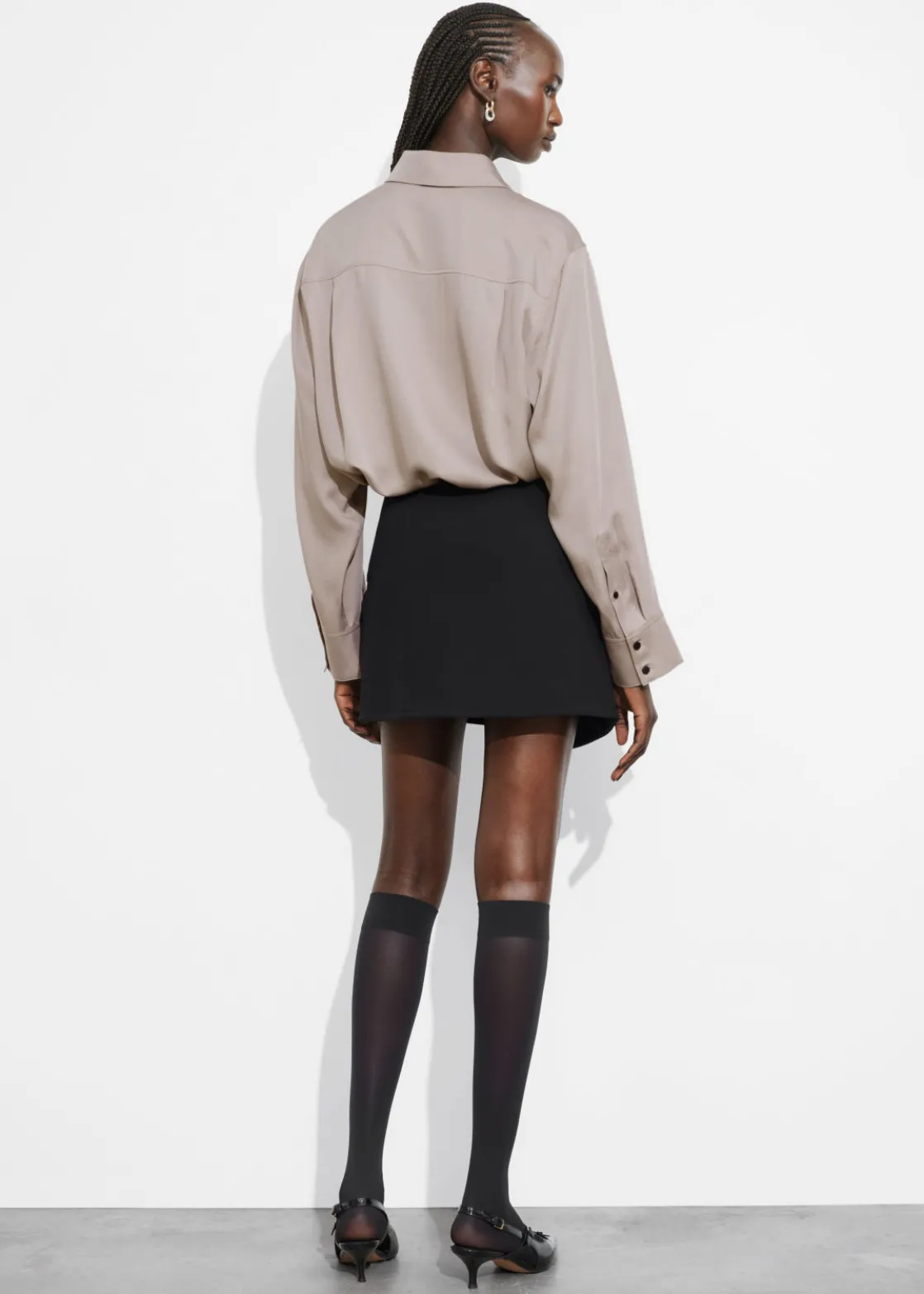 Satin shirt defined by a relaxed silhouette and a slighty longer back.
