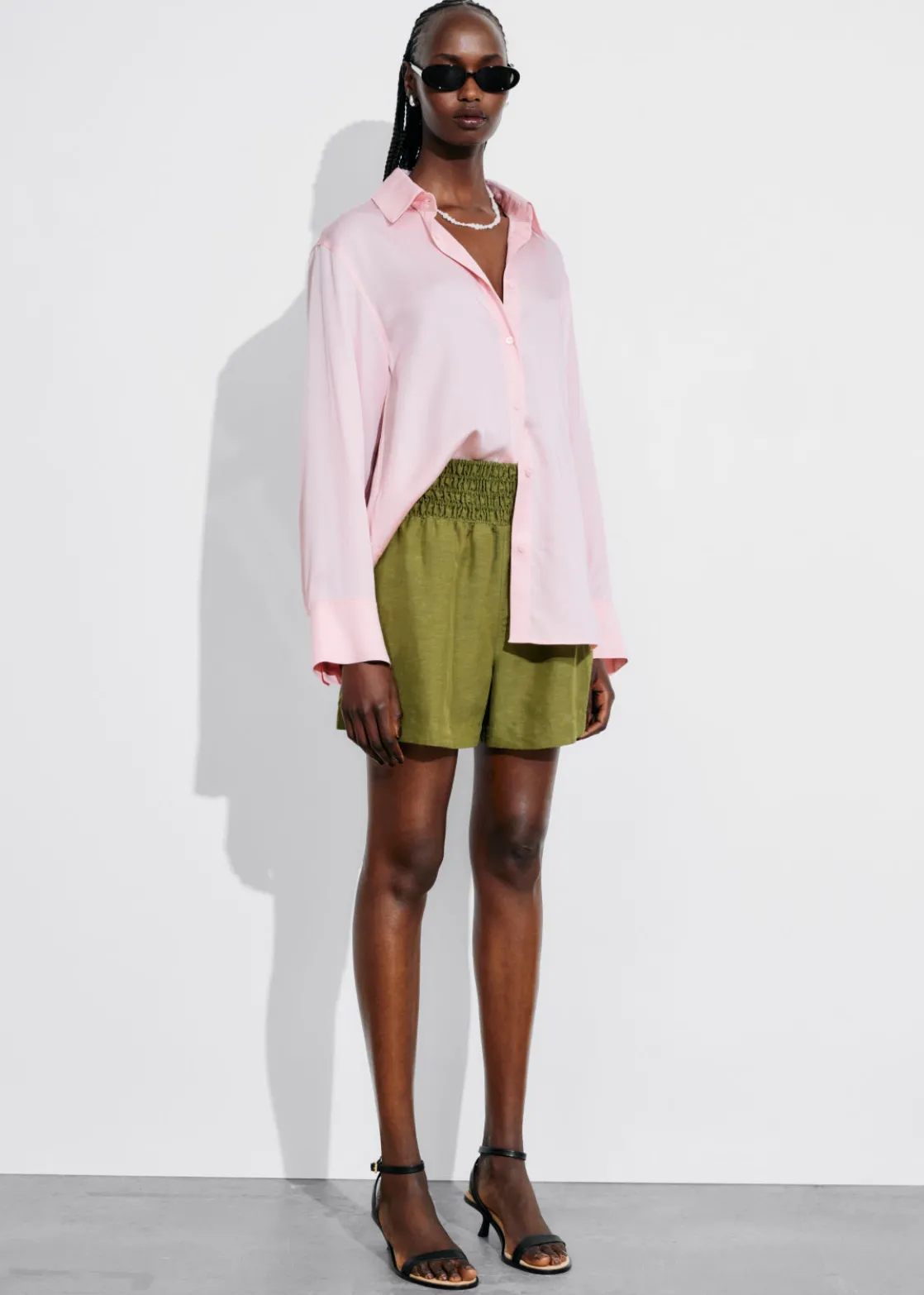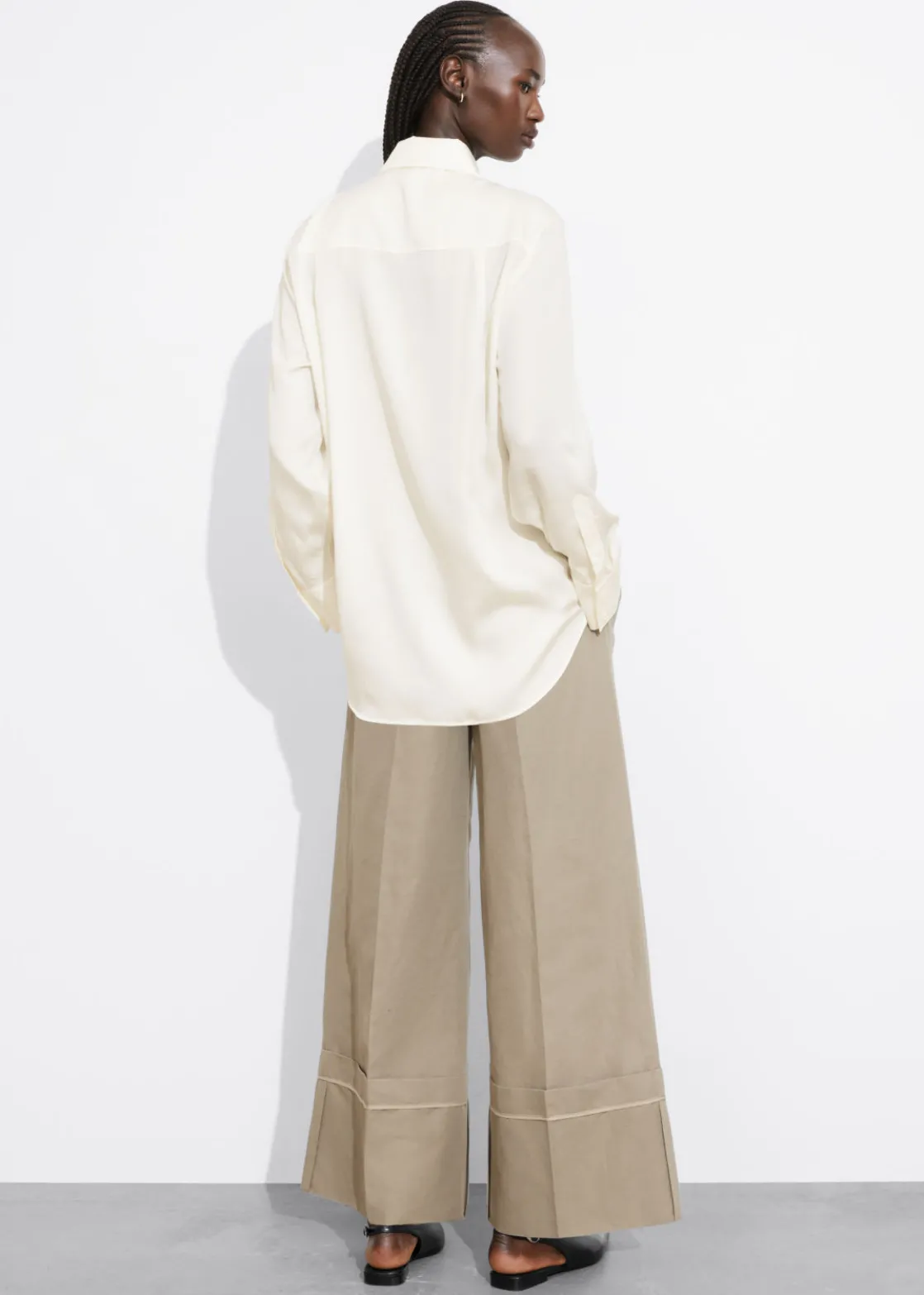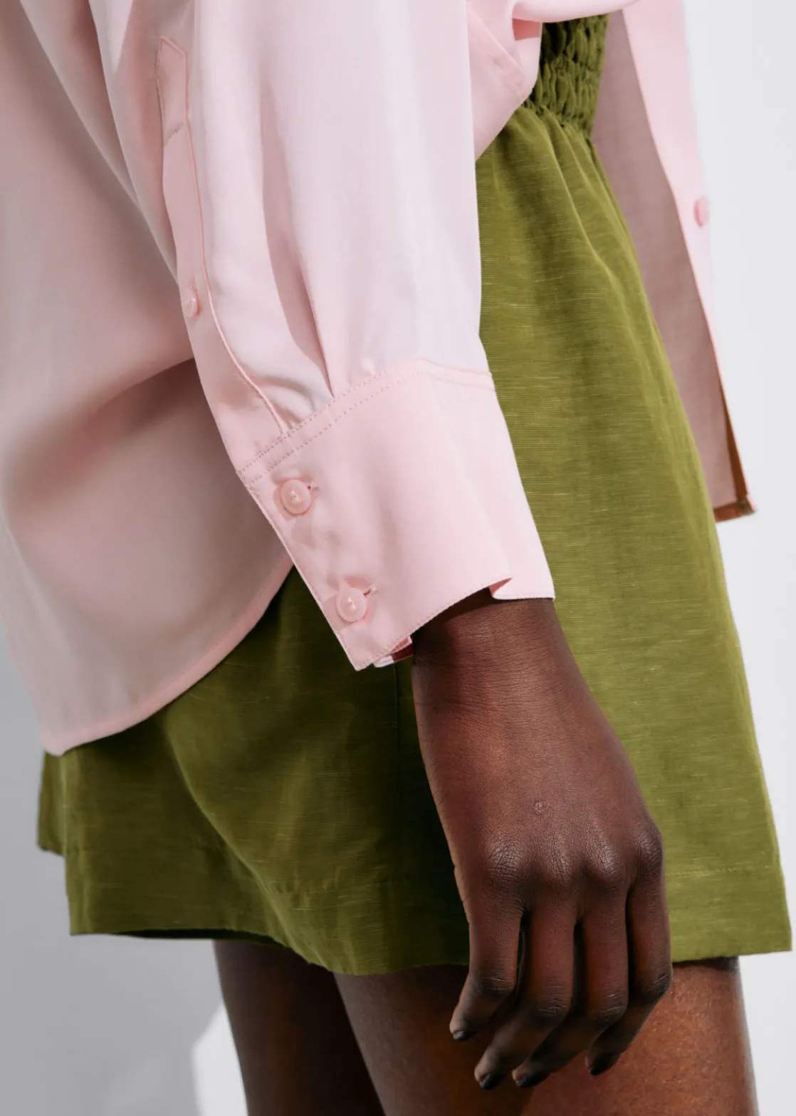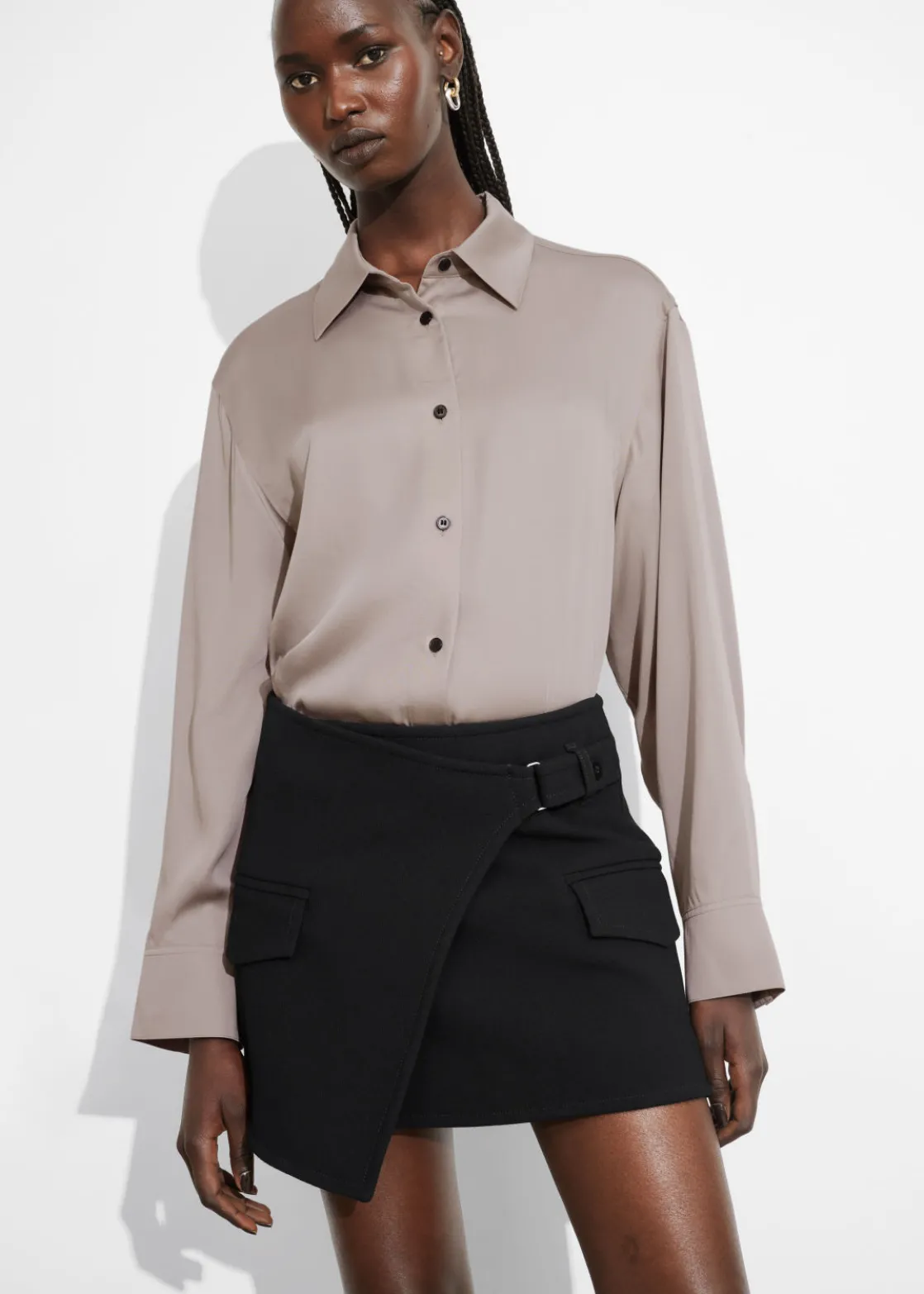 Satin shirt defined by a relaxed silhouette and a slighty longer back.