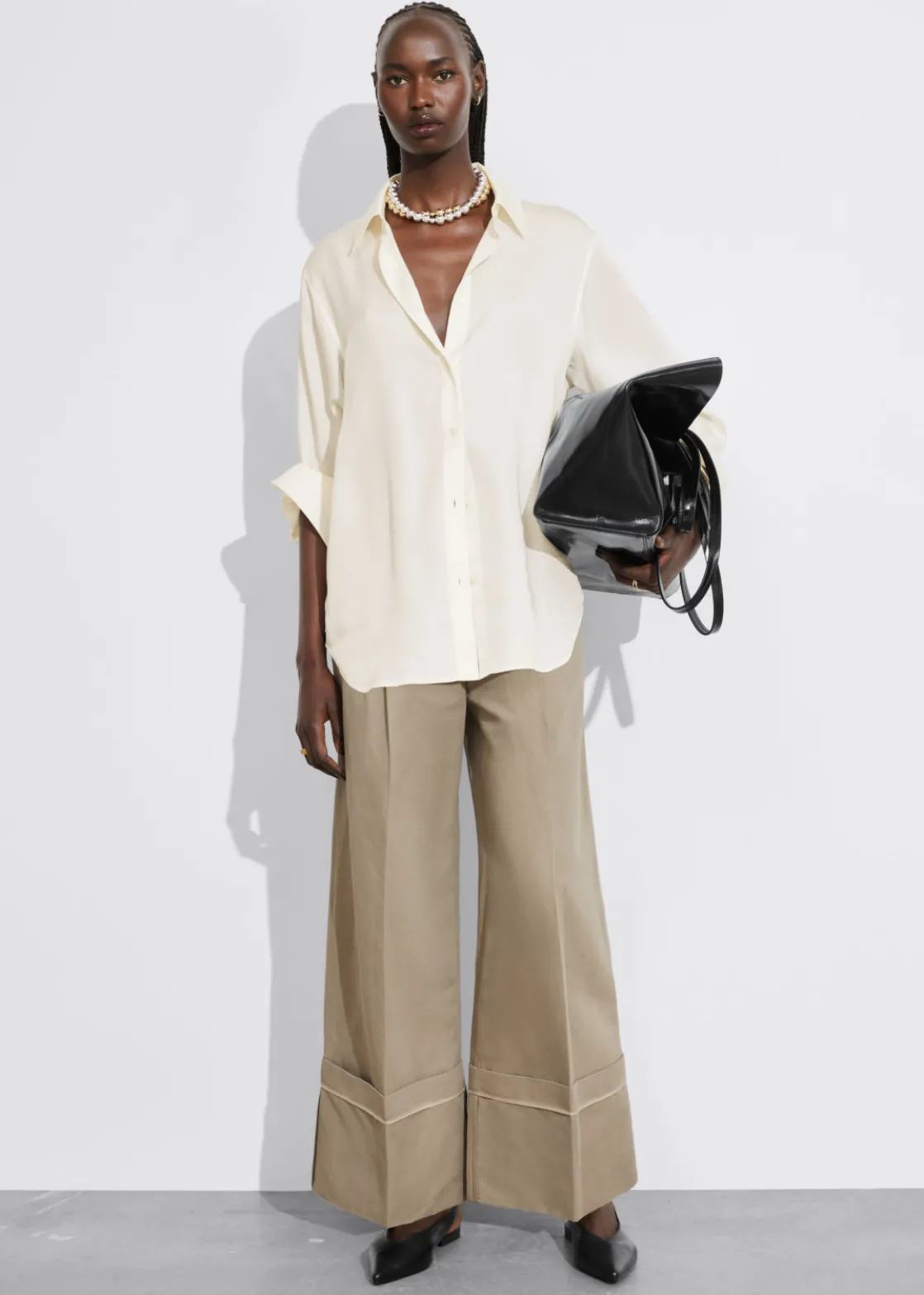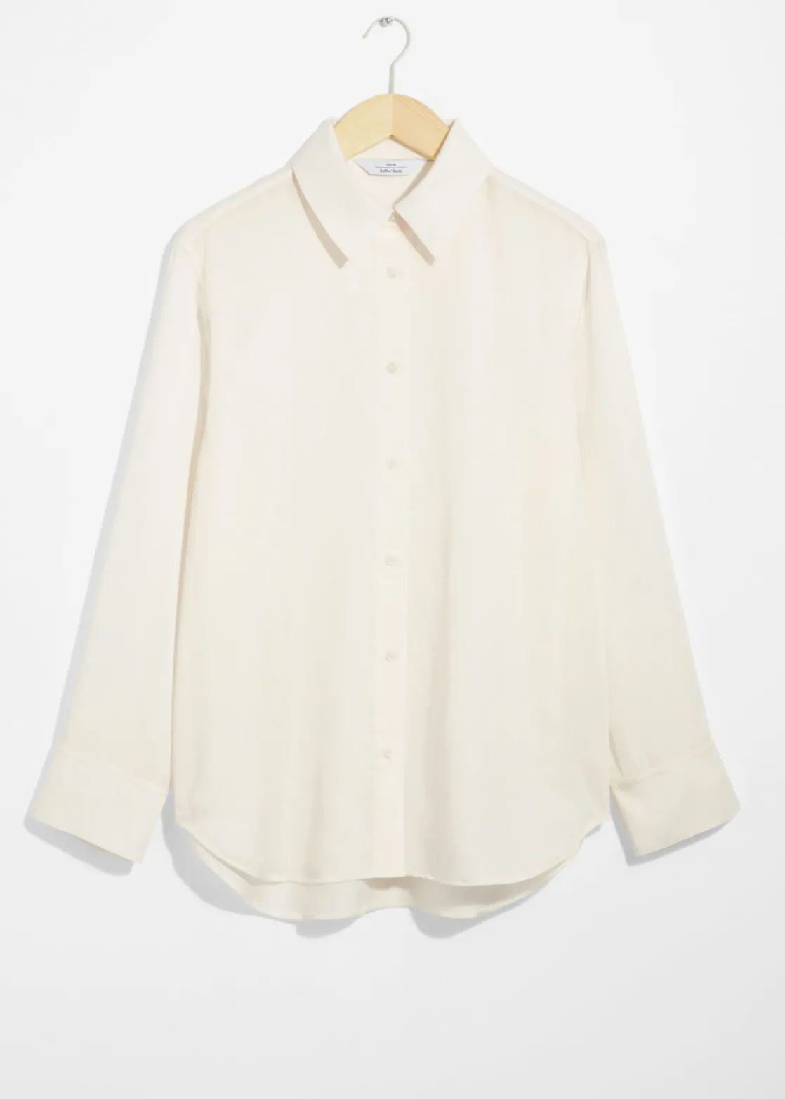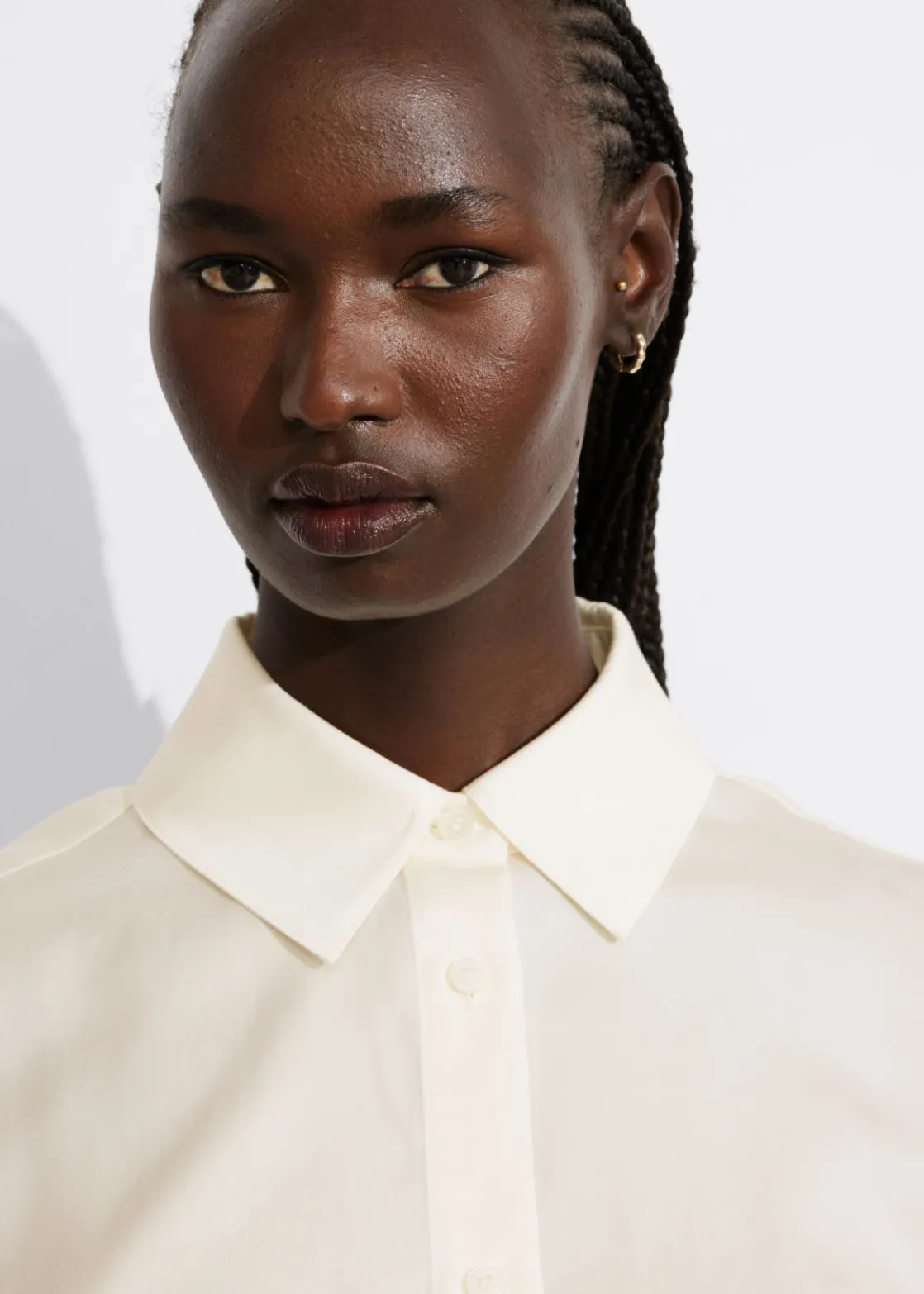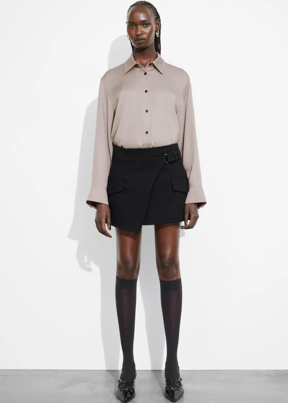 Satin shirt defined by a relaxed silhouette and a slighty longer back.