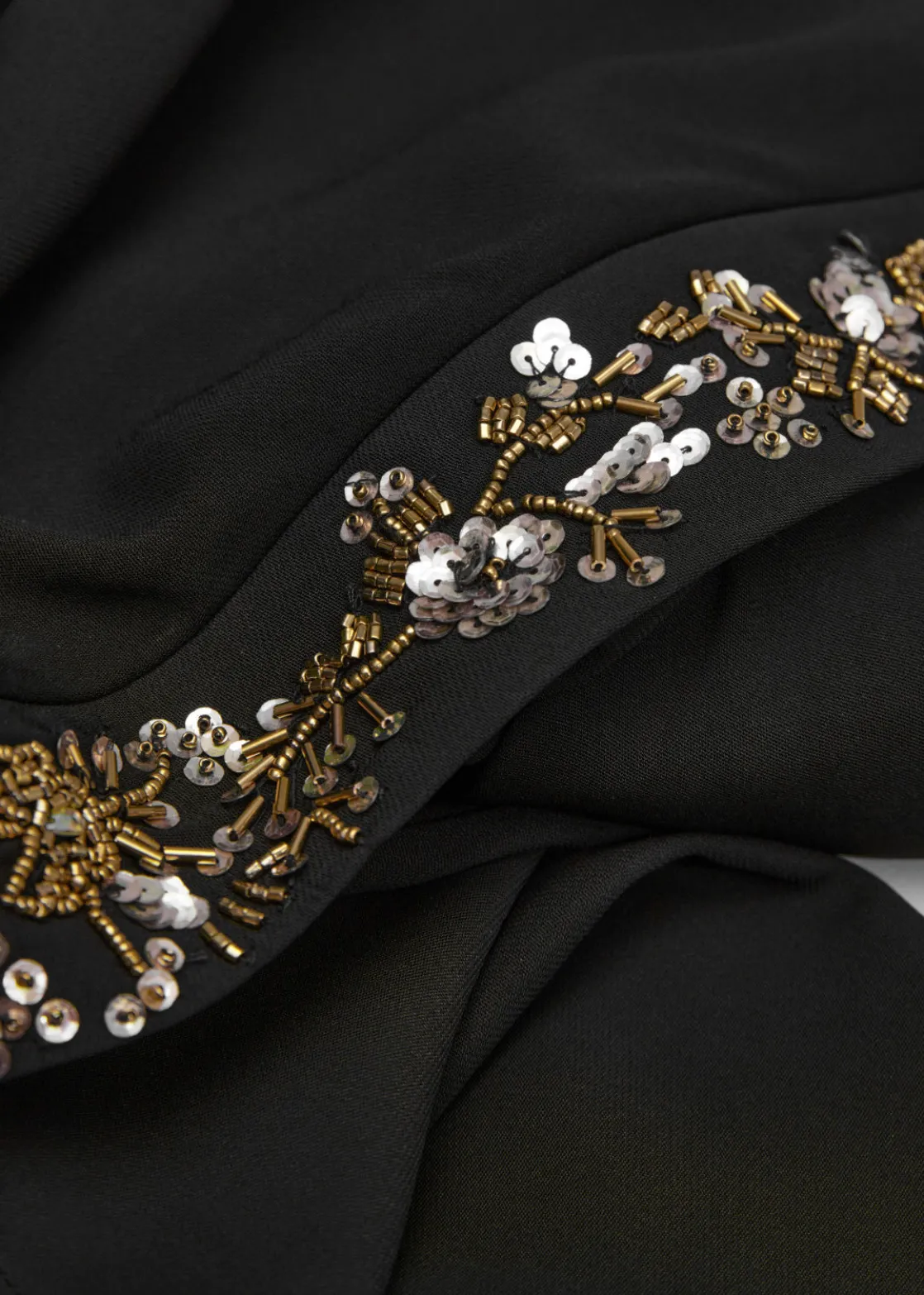 Long-sleeve mini dress adorned with sequin embroidery along the front and back.