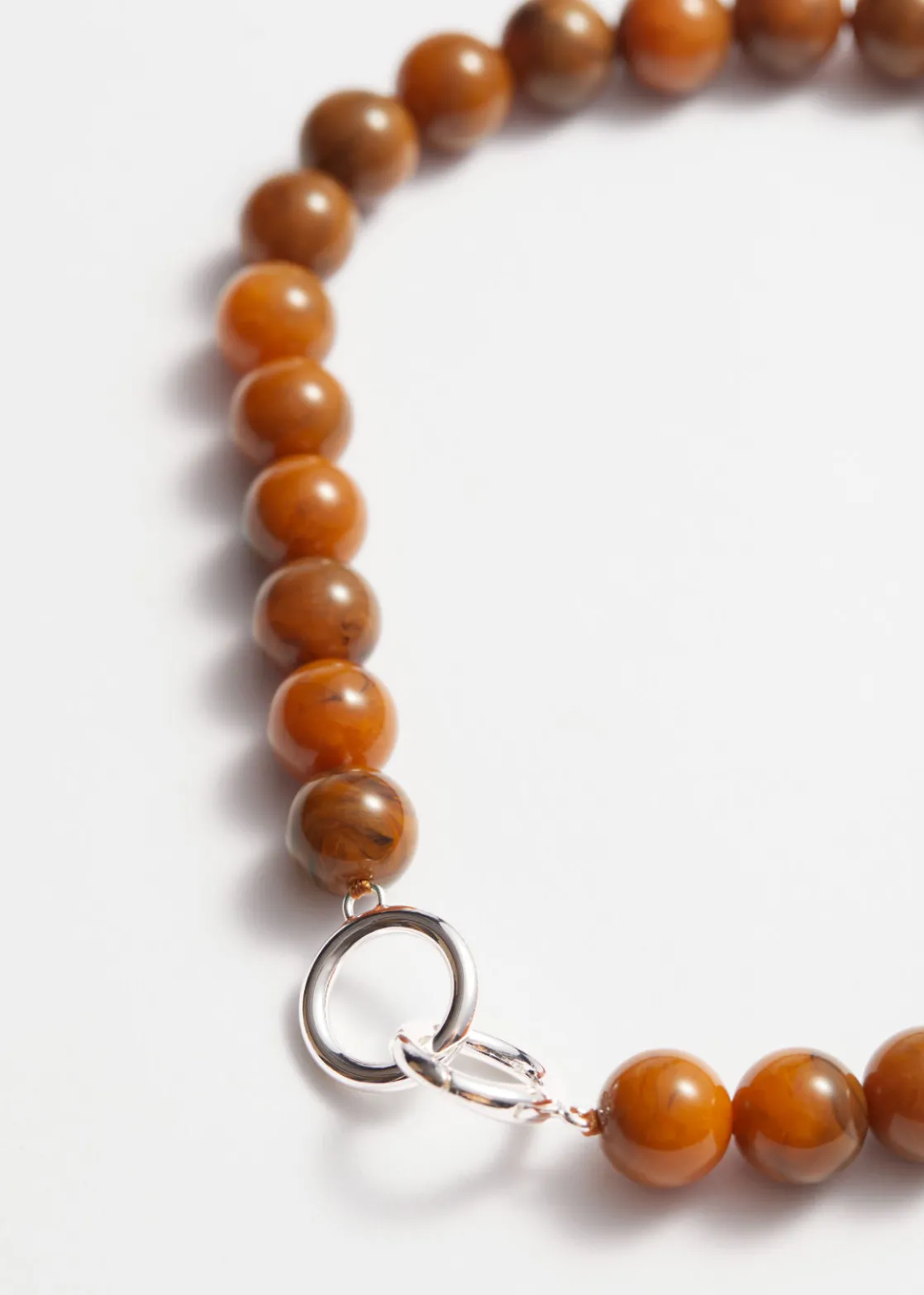 Short stone bead necklace featuring a delicate O-ring clasp.