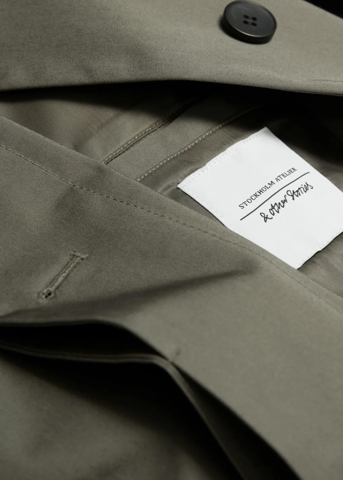 Collared single-breasted trenchcoat with a clean finish and a tonal self-tie belt.