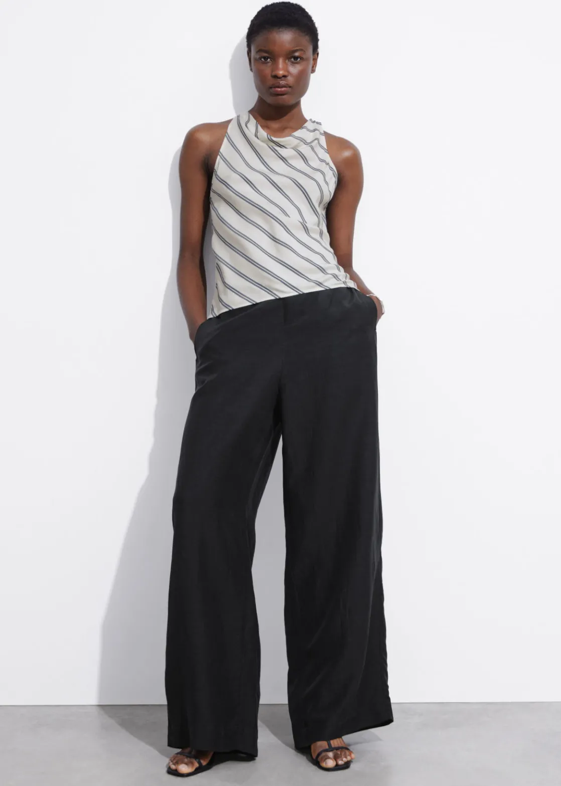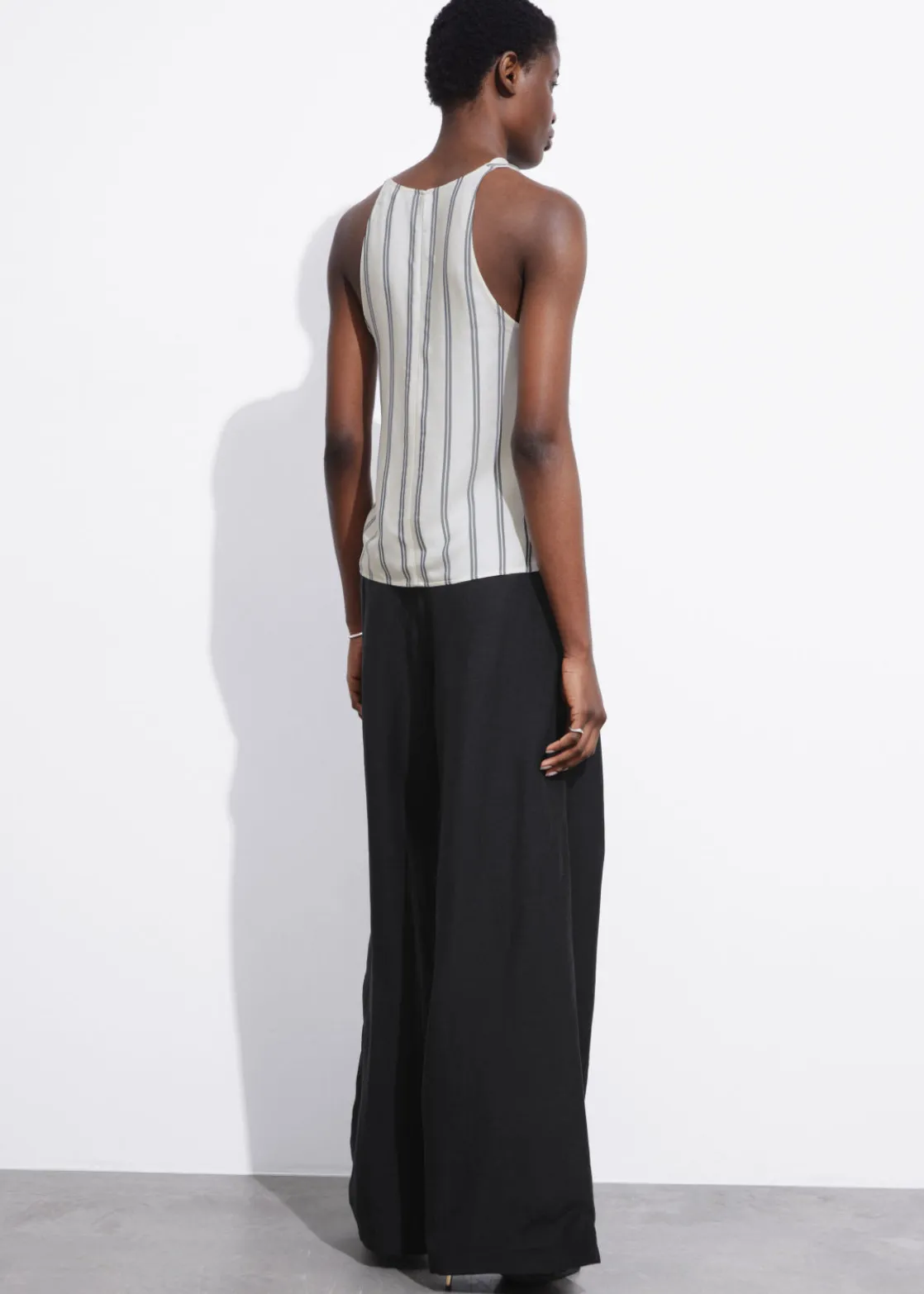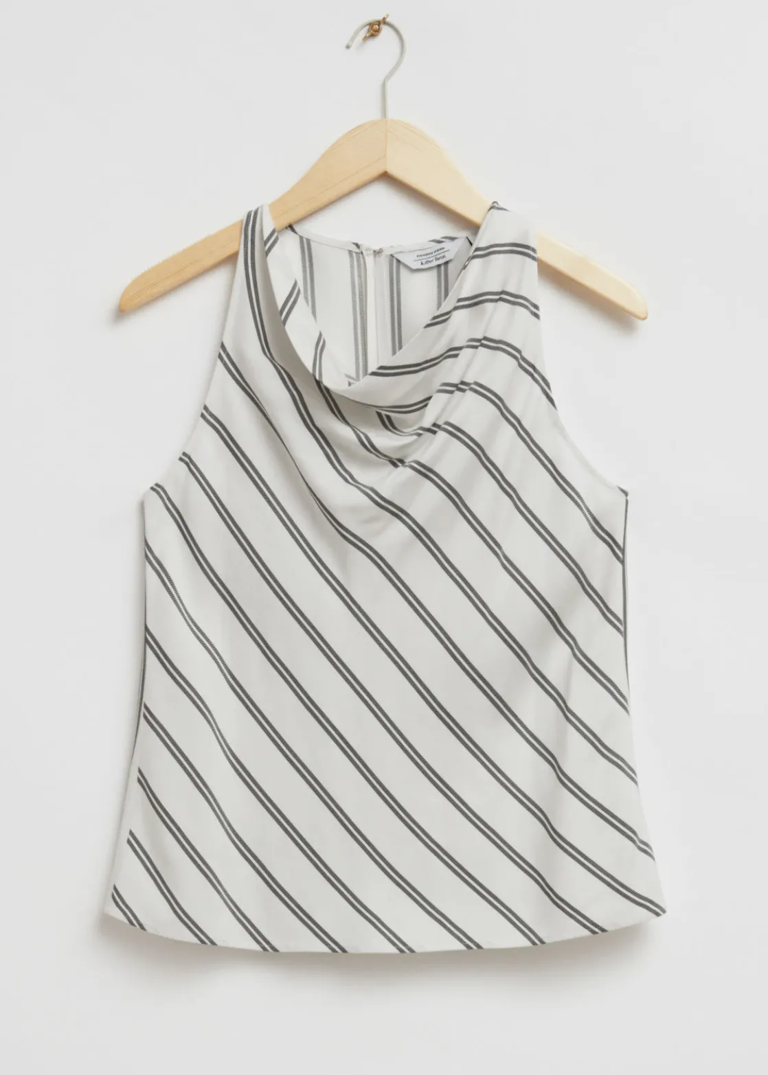 Slim-fit cowl neck top designed in a slim cut with a softly draped cowl neckline with sleeveless v-shaped armholes and a keyhole back opening secured with a silver-tone hook and eye fastening.