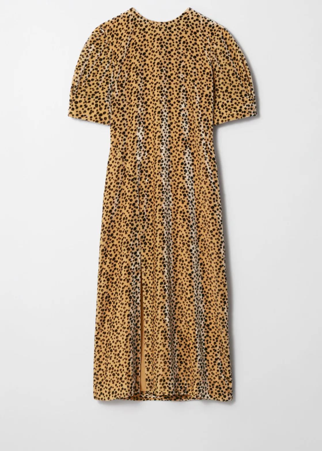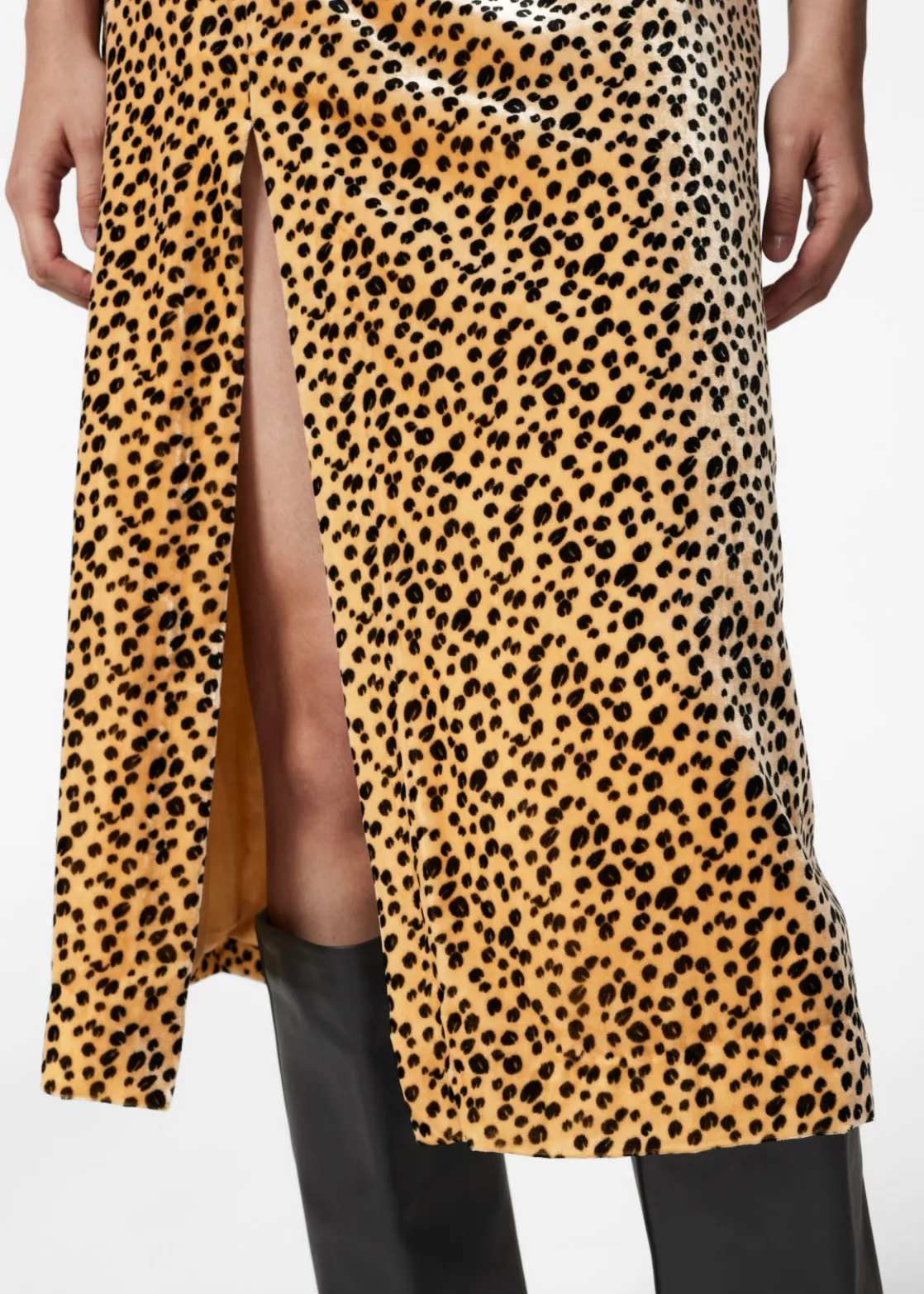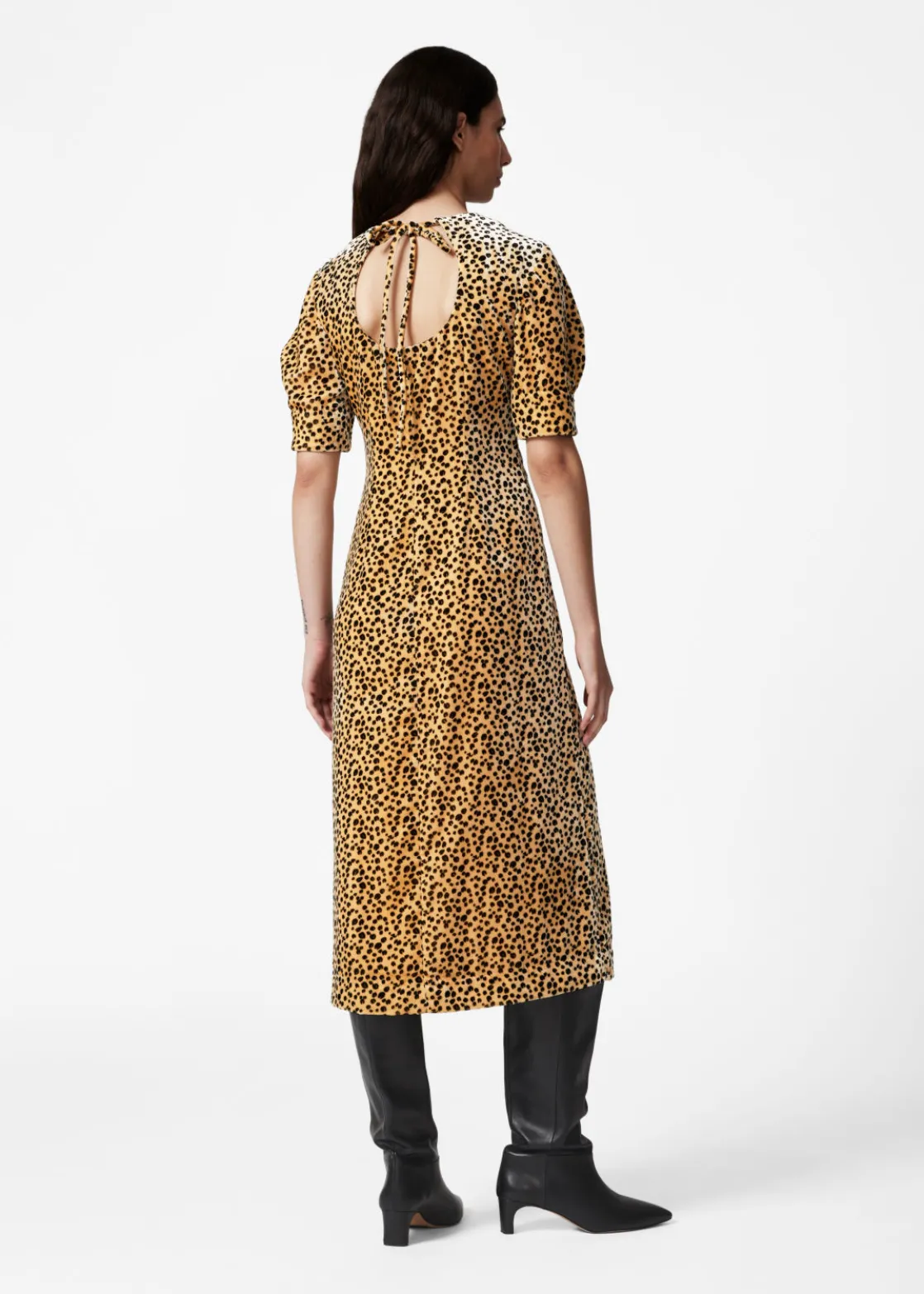 Velvet midi dress detailed with a side slit and a cut-out detail at the neck secured with ties.