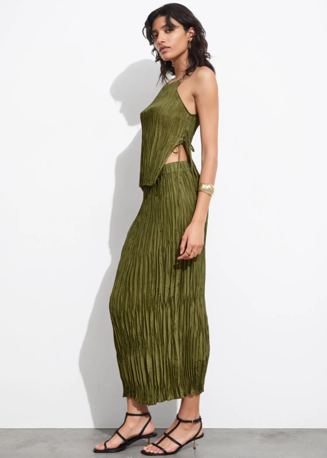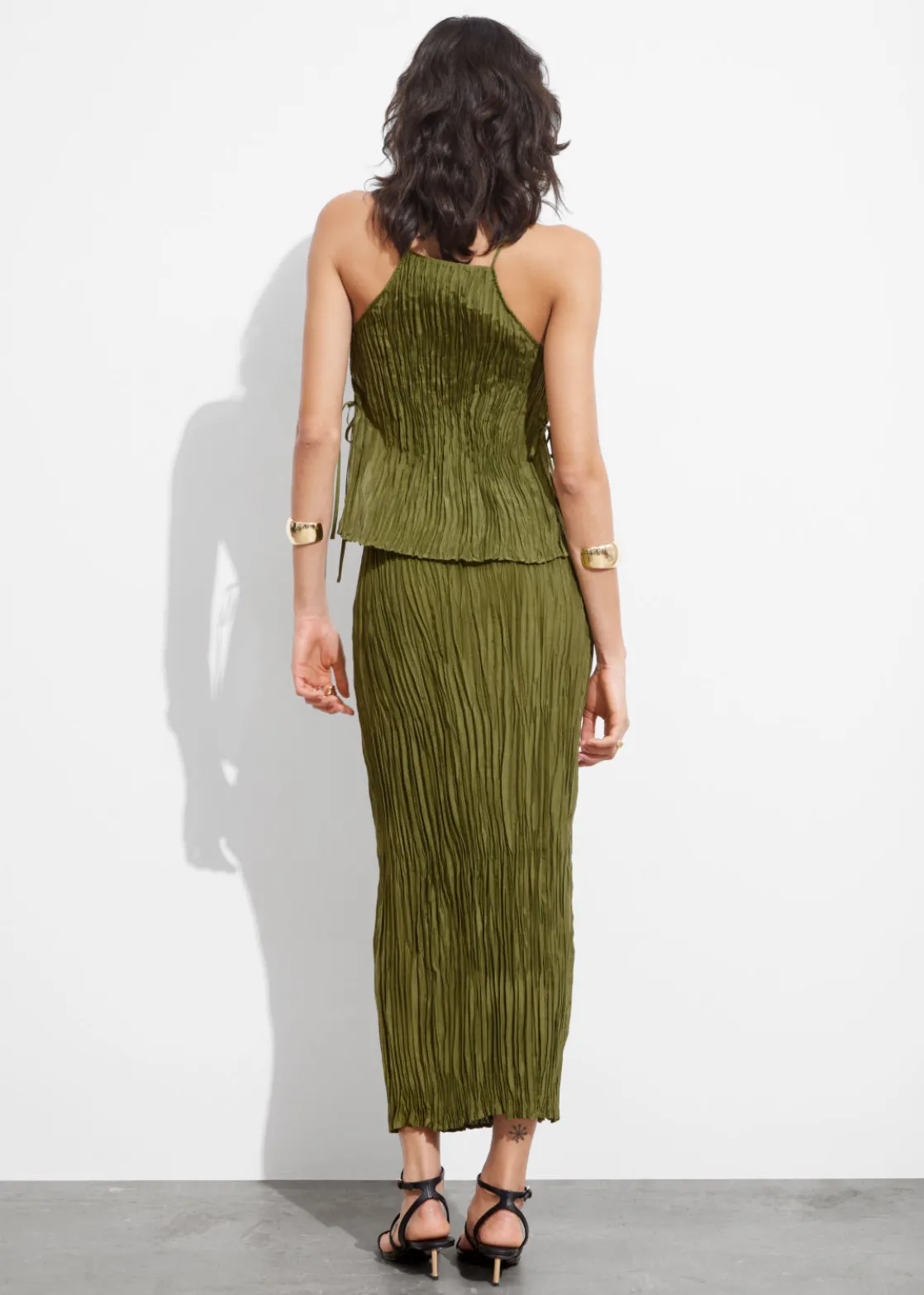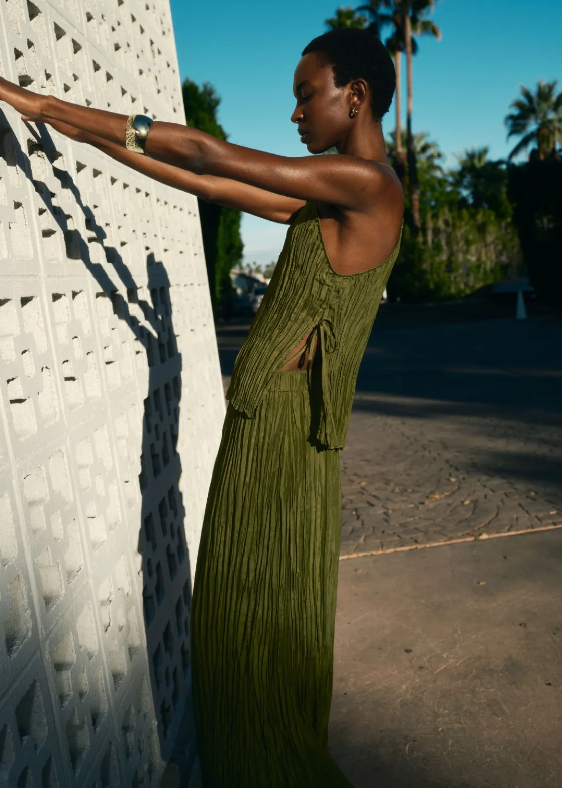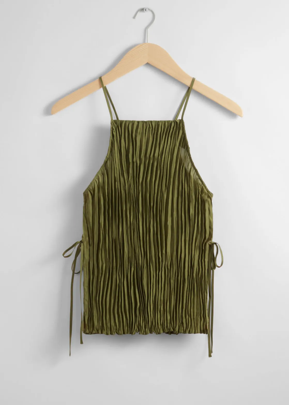 Strappy top crafted from mulberry silk. Designed with a creased finish and self-ties at the sides.