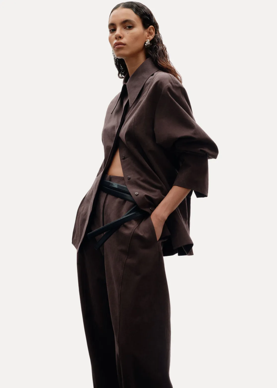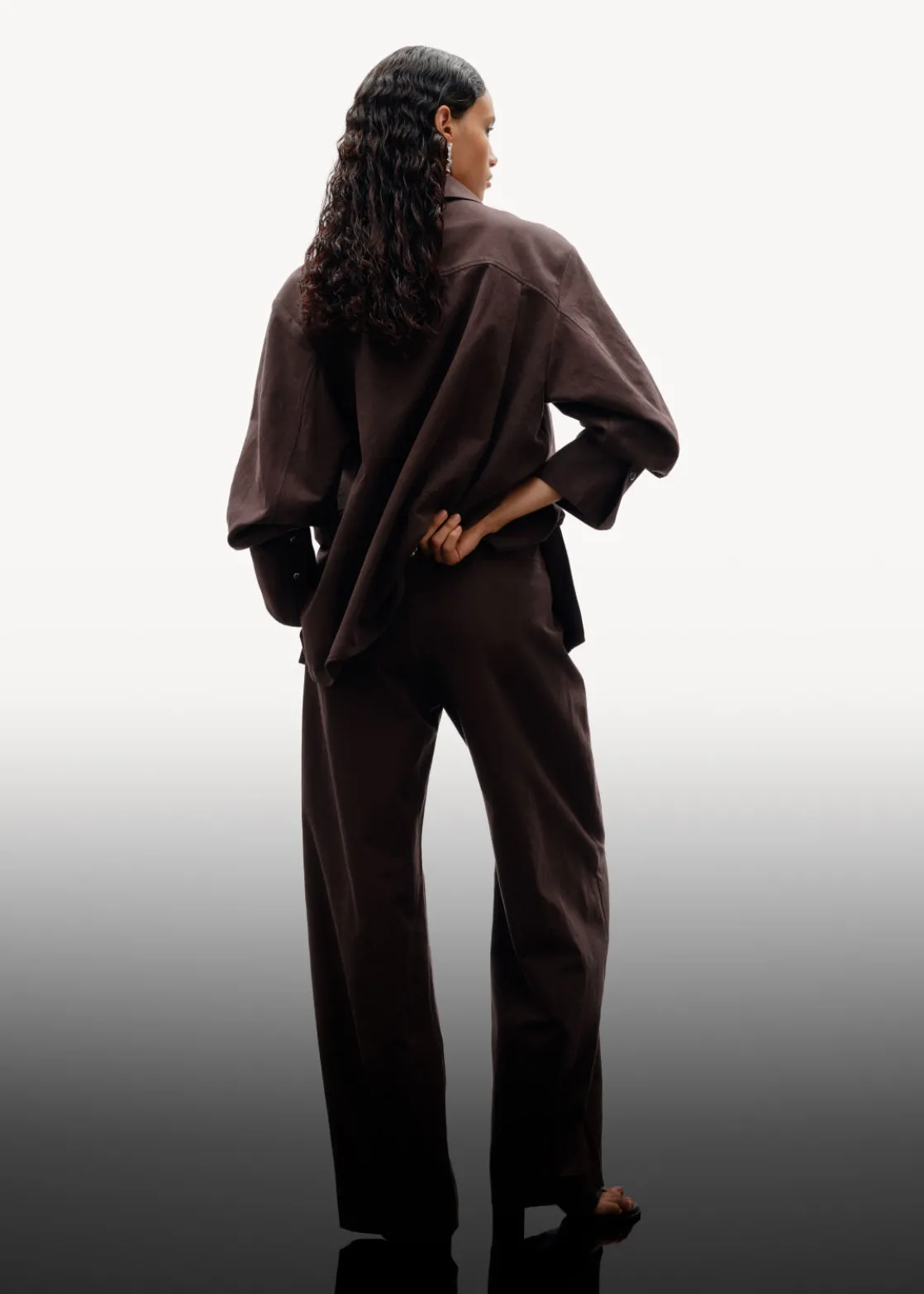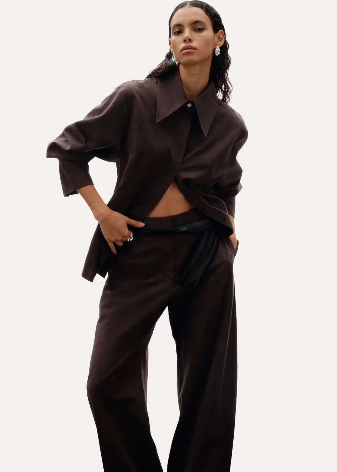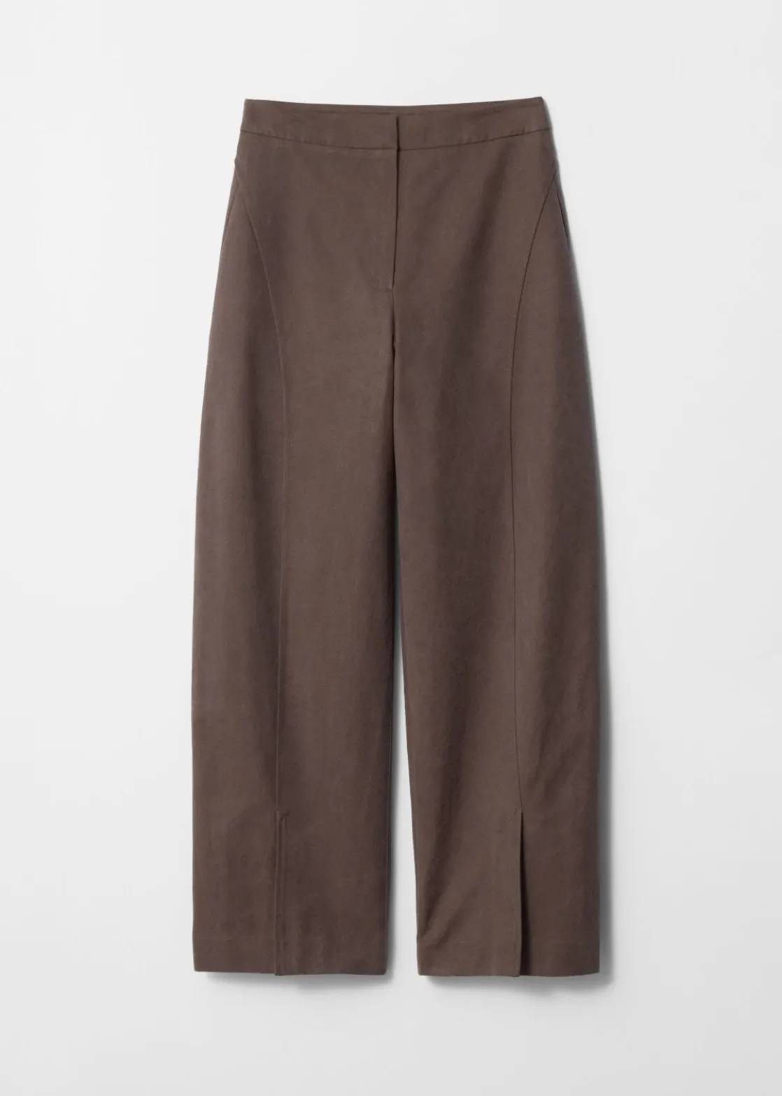 Tailored high-waist trousers made from a silk blend. Detailed with exposed vertical seams along the legs.