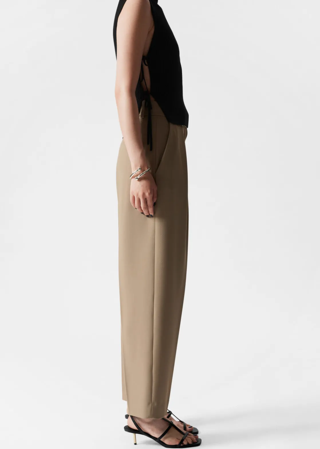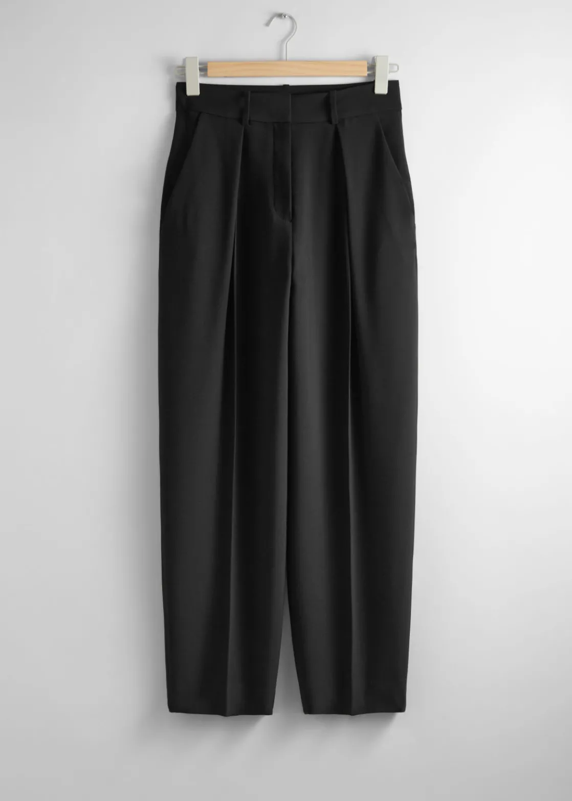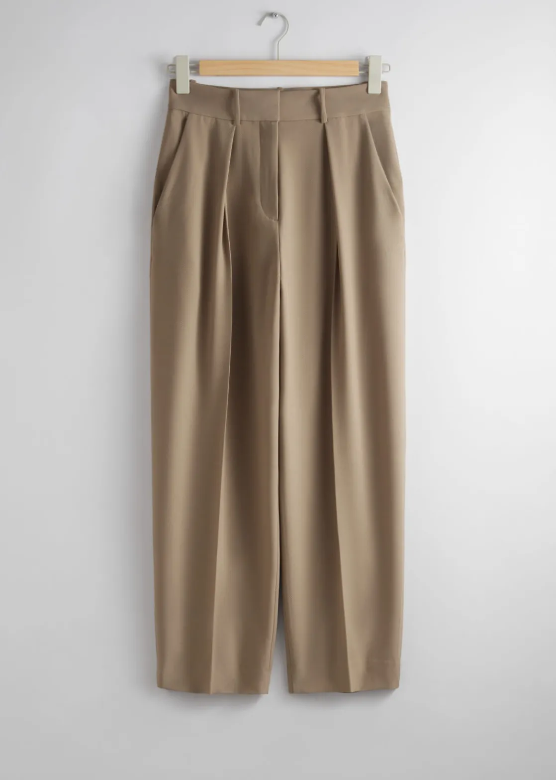 Tailored high-waist trousers featuring a tapered leg, pleated detailing and press creases.