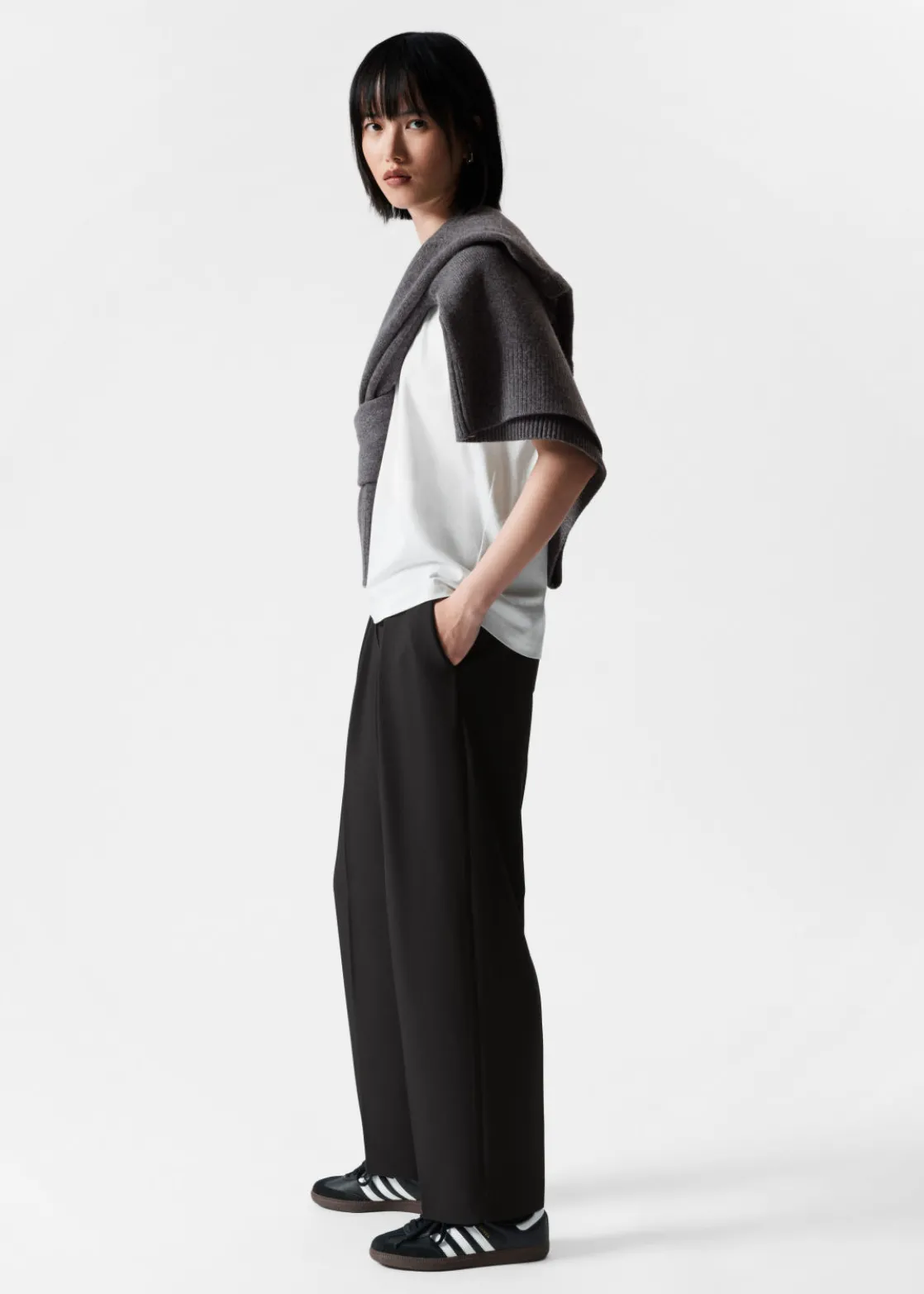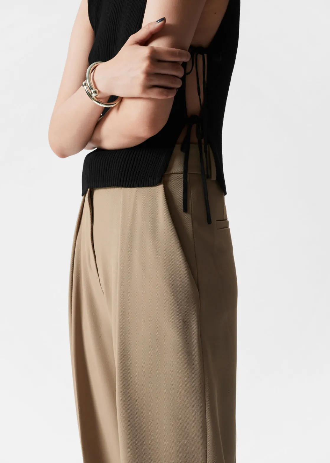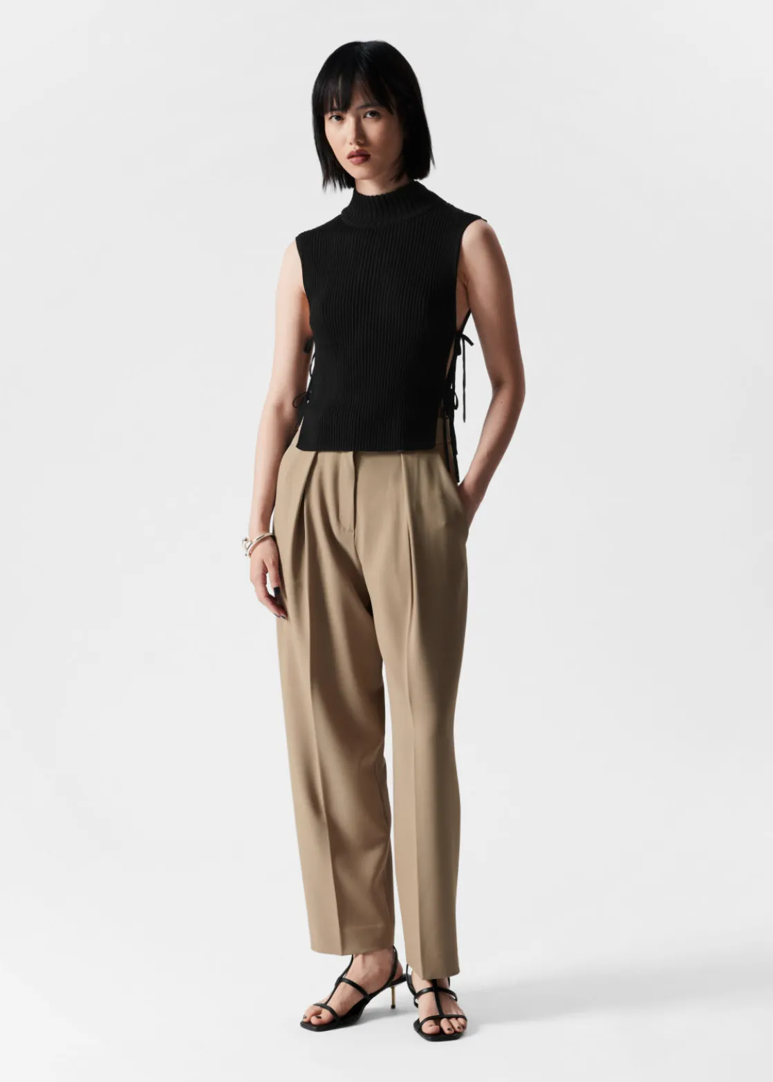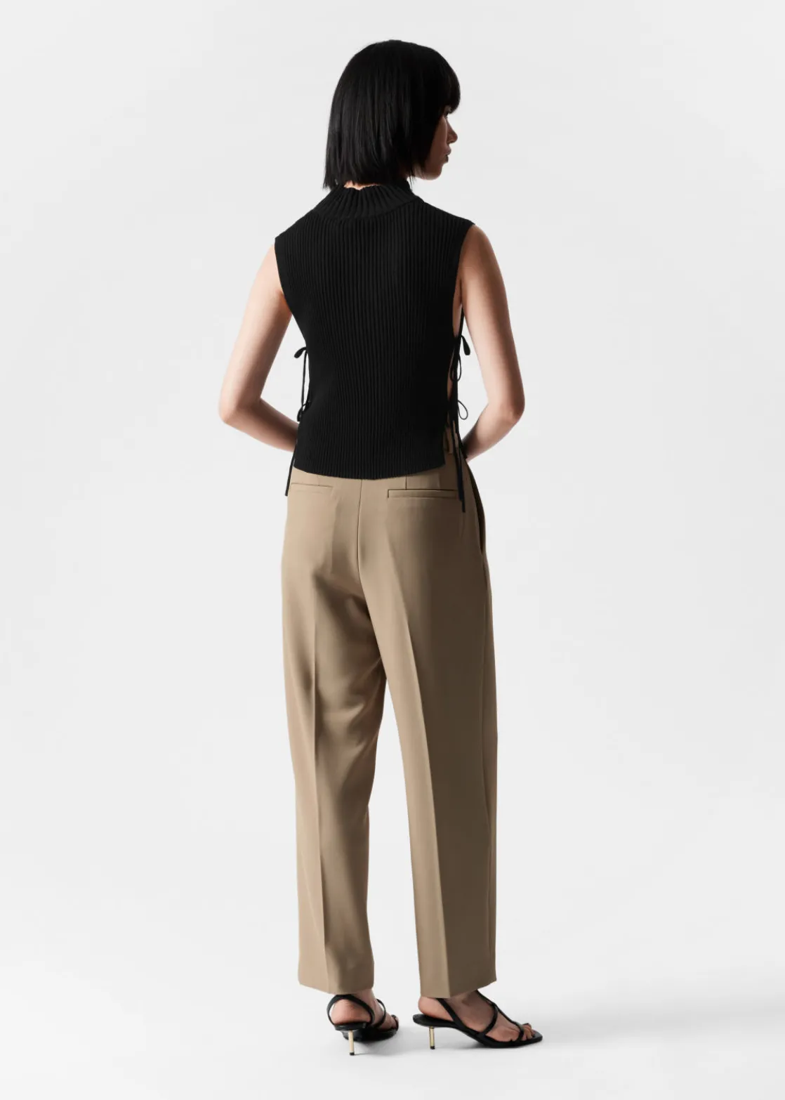 Tailored high-waist trousers featuring a tapered leg, pleated detailing and press creases.