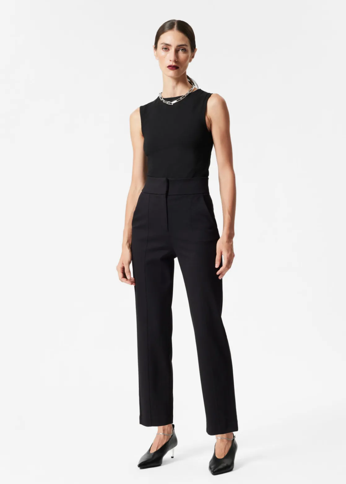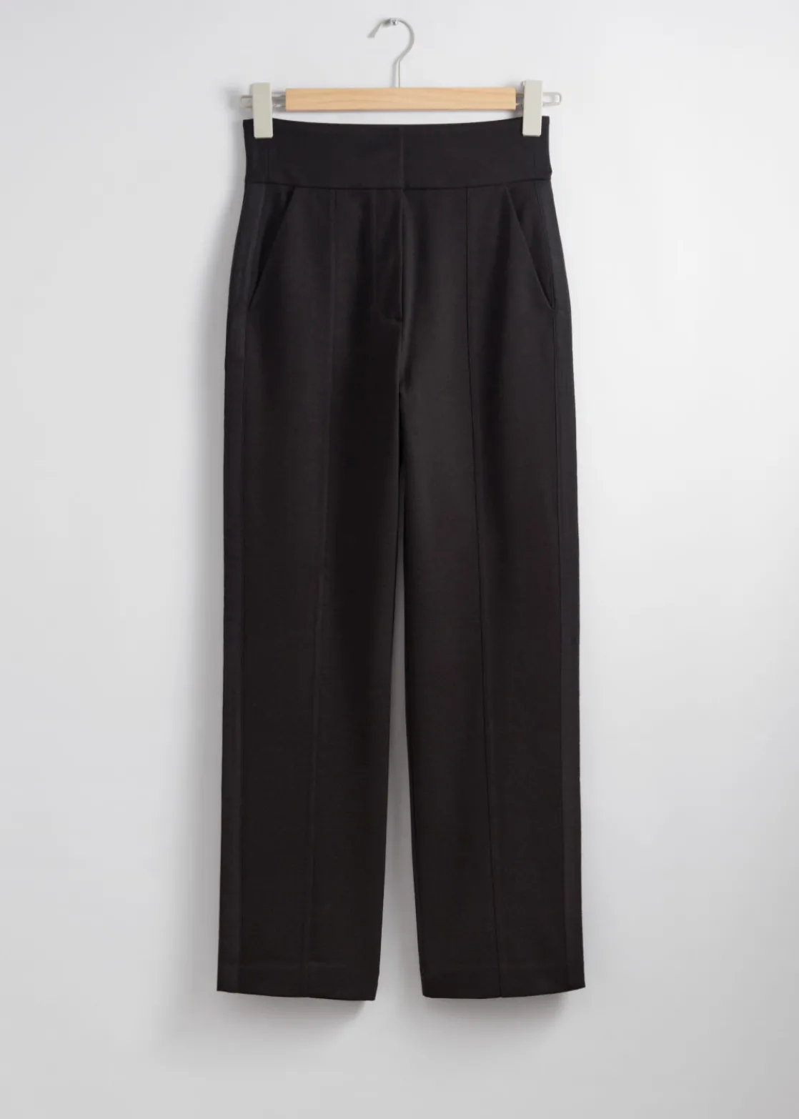 Tailored trousers featuring a straight silhouette and exposed vertical seams.