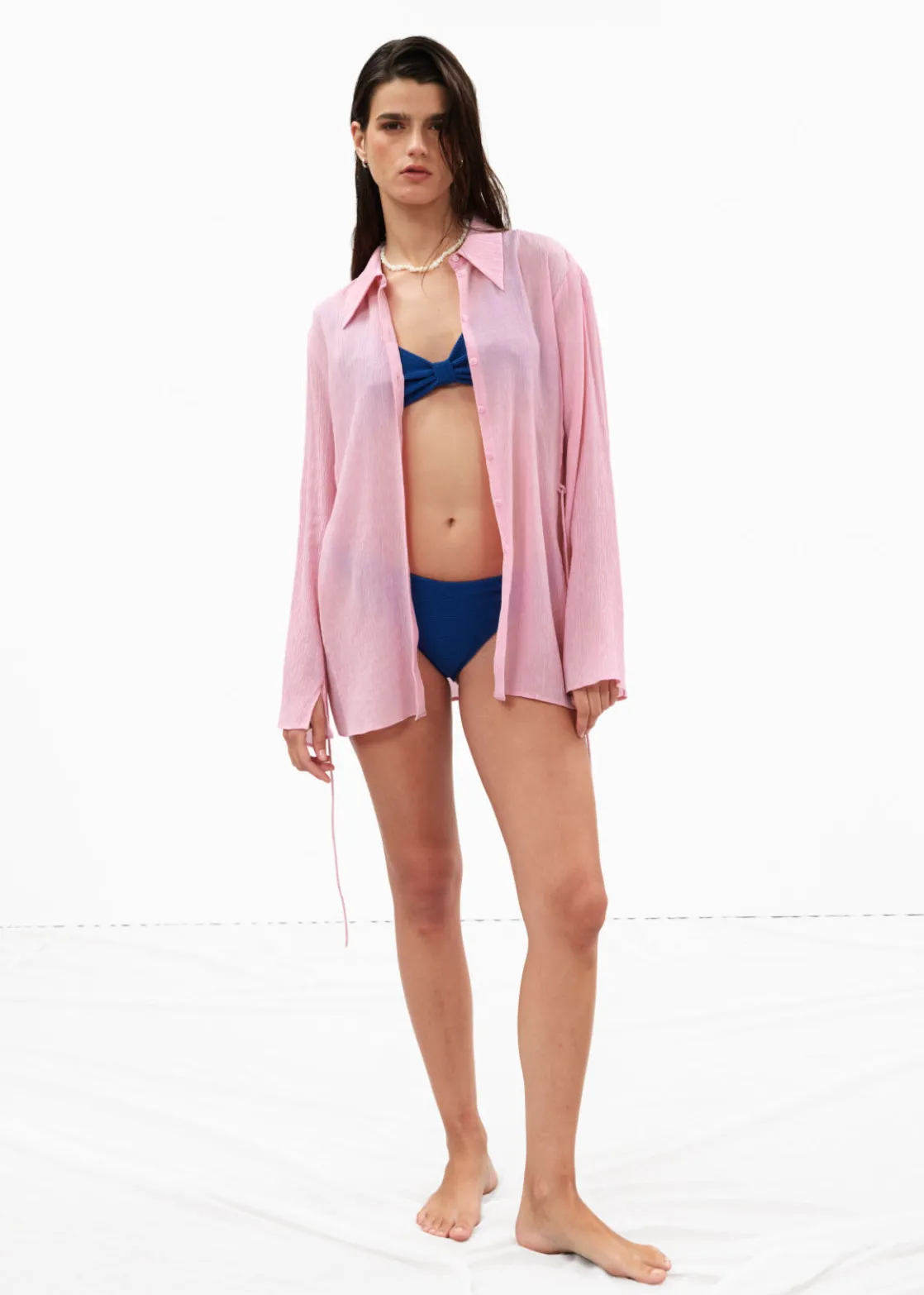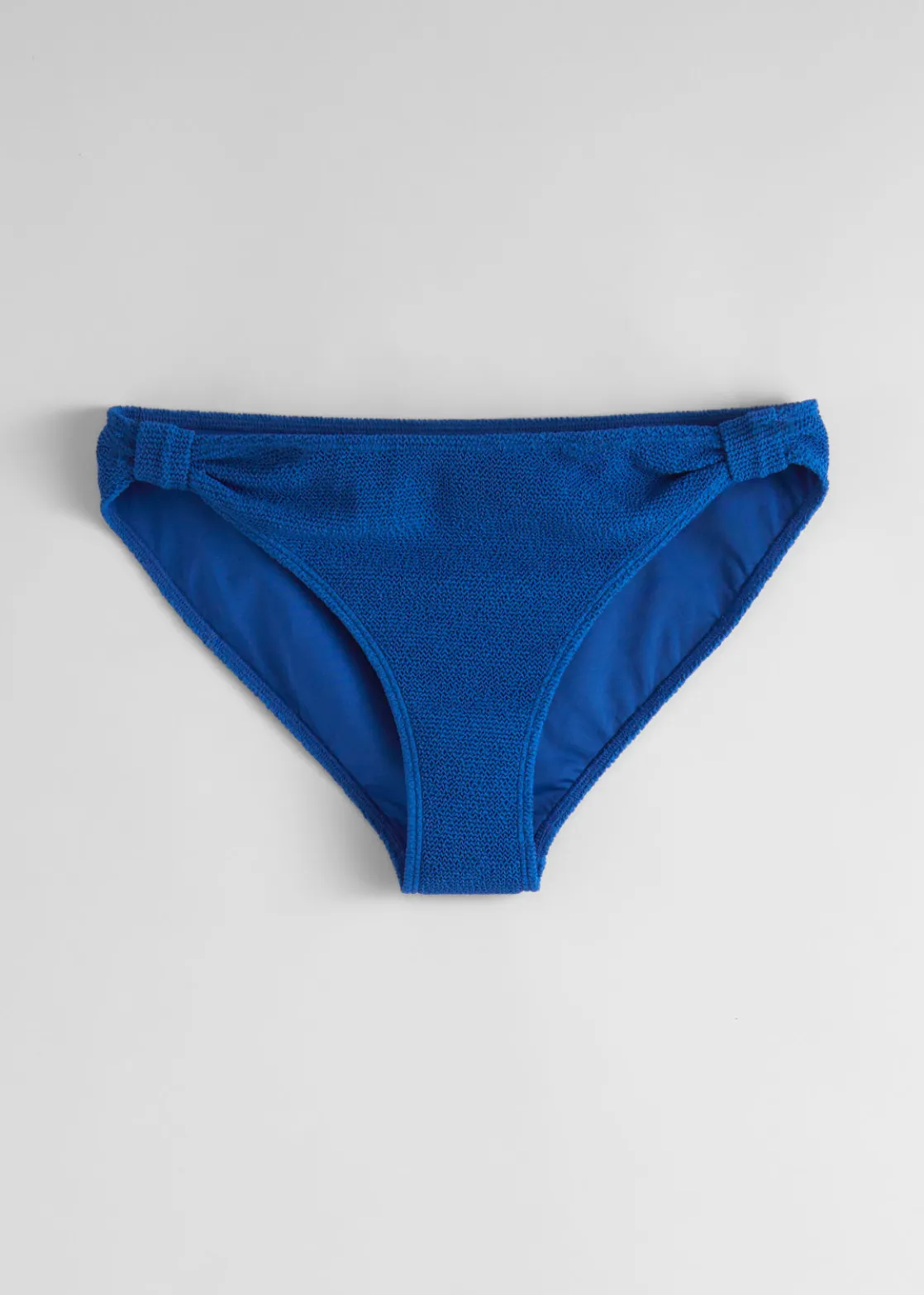 Bikini briefs with a textured, terrycloth-inspired finish. Featuring loop details at the sides for a gently gathered silhouette.
