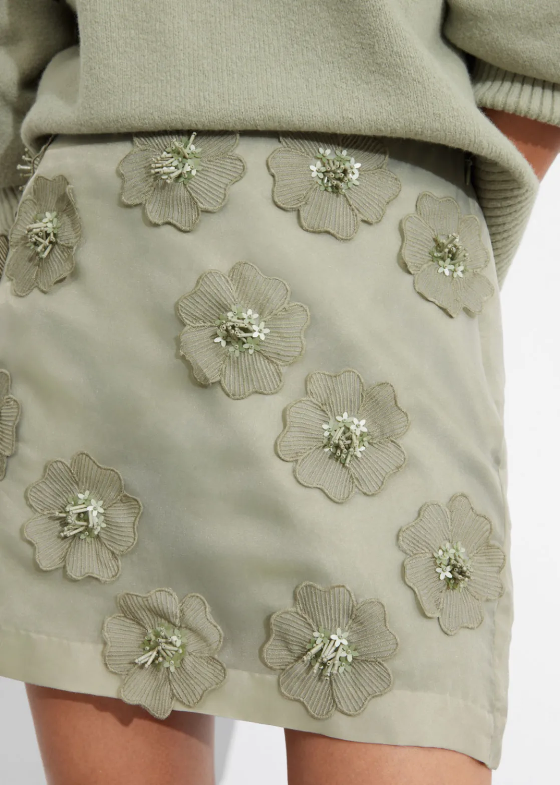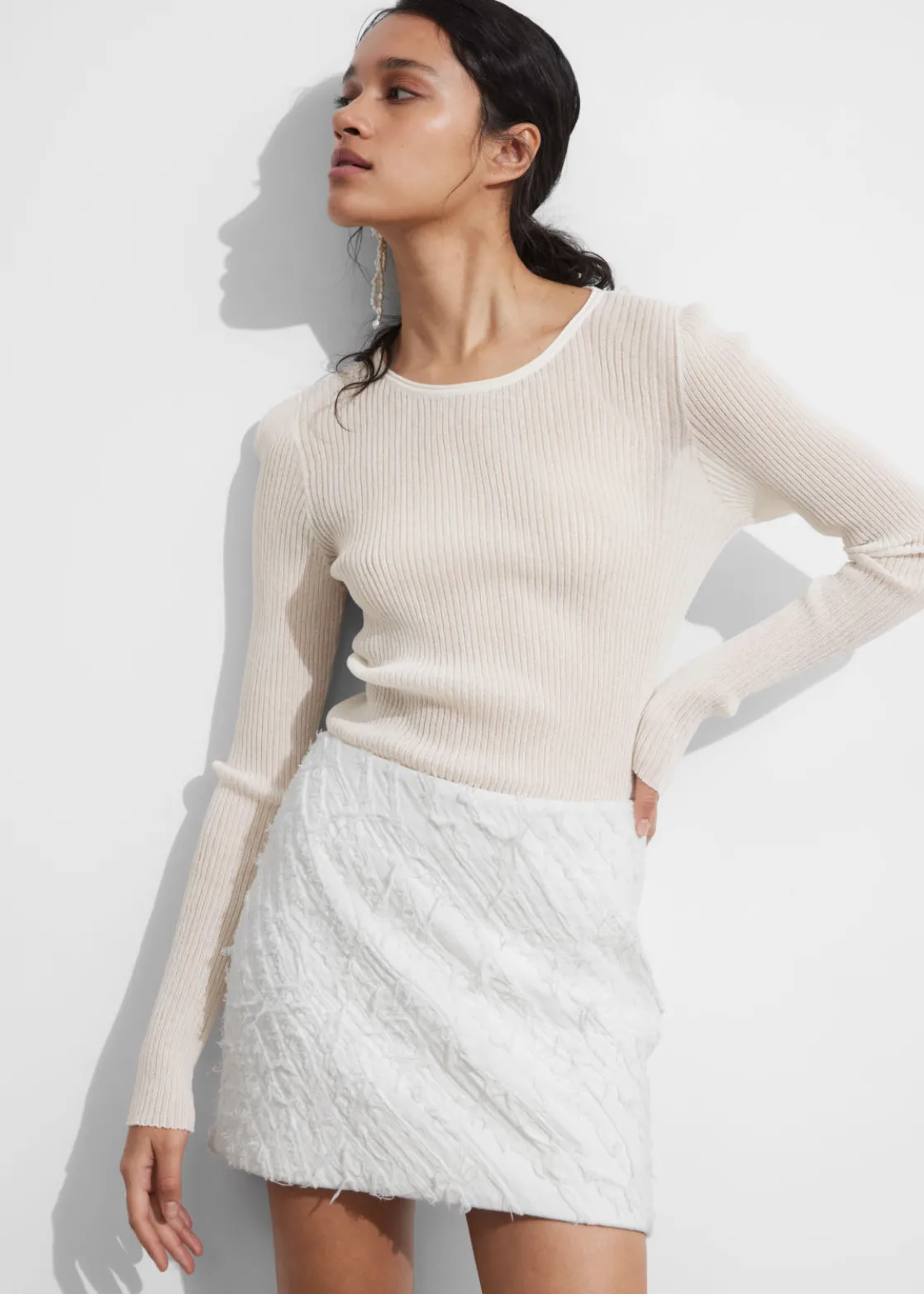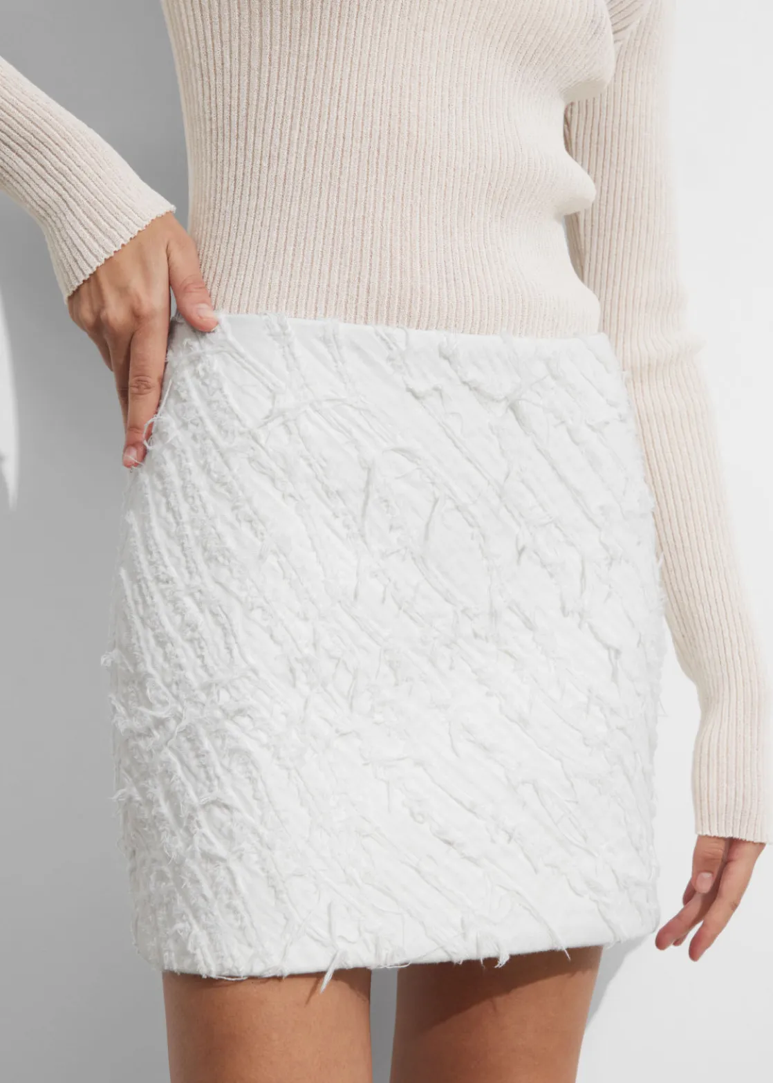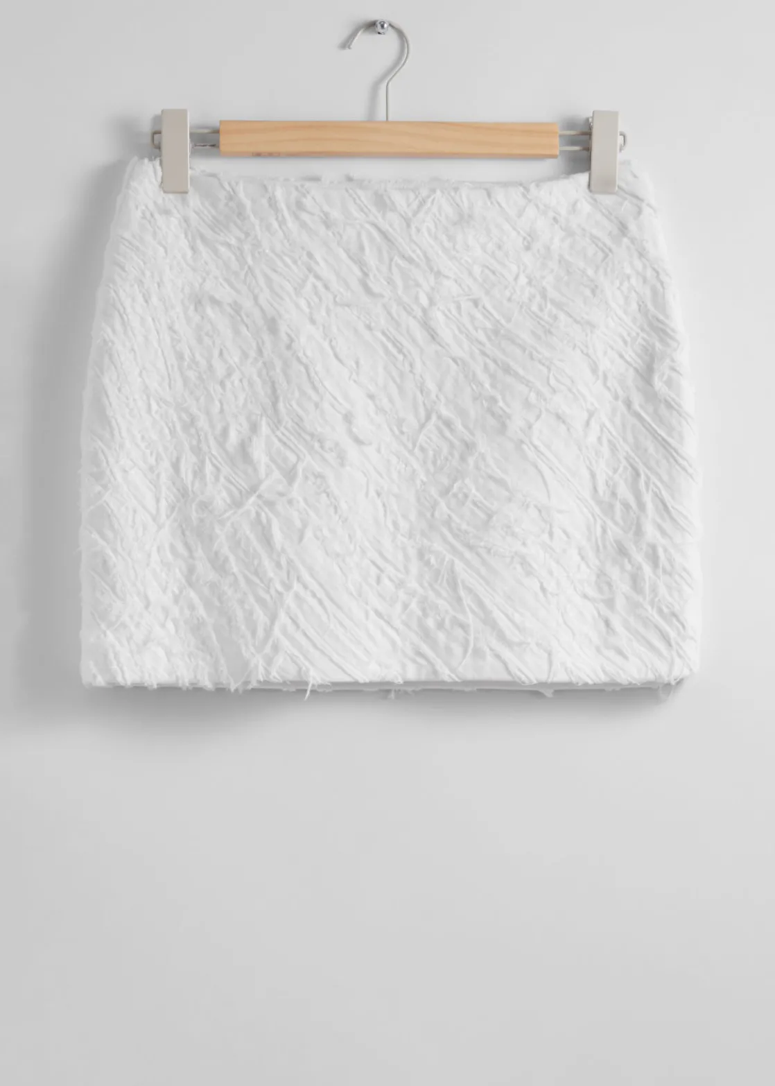 Mini skirt with a textured finish. Fastened with a zipper at the side.