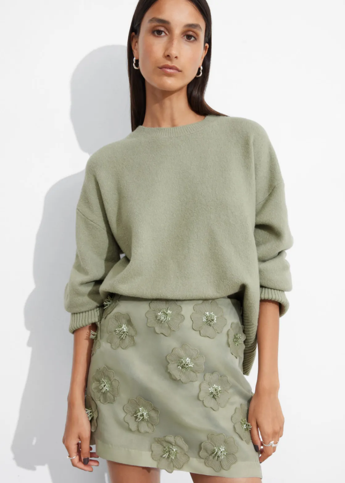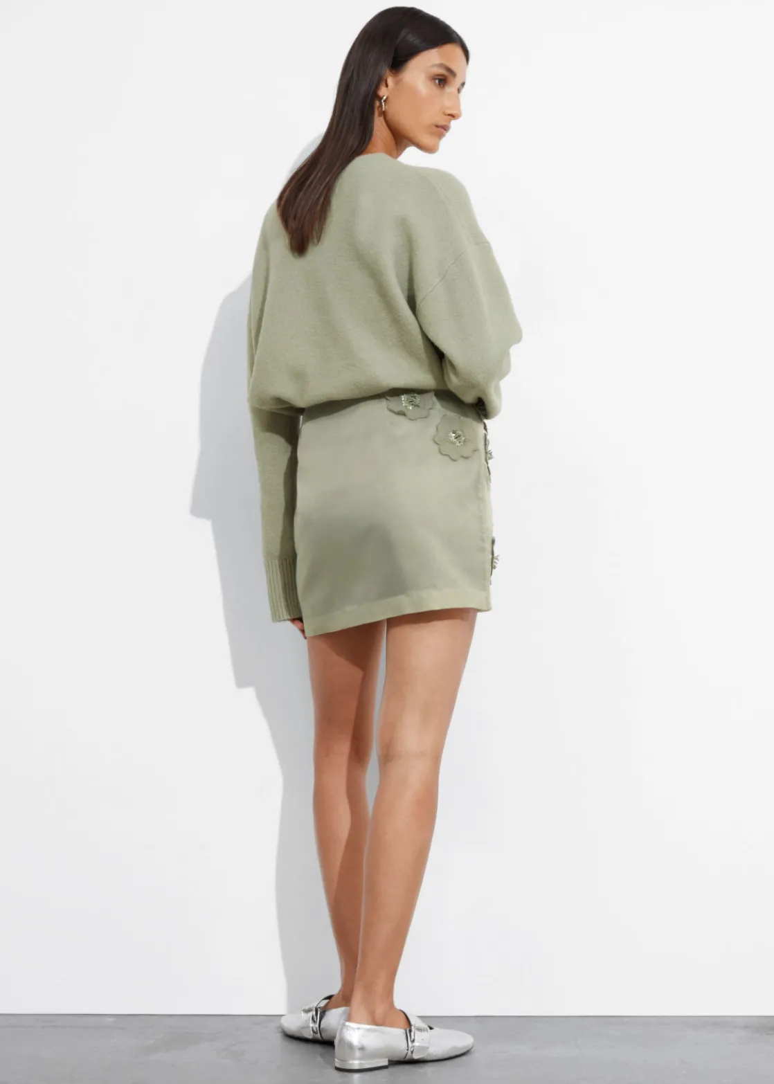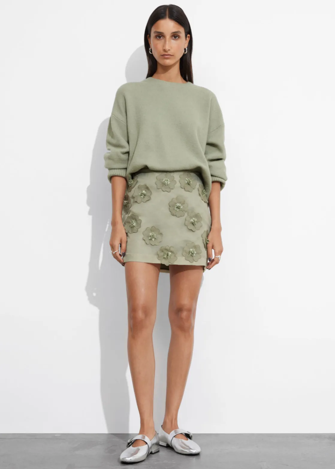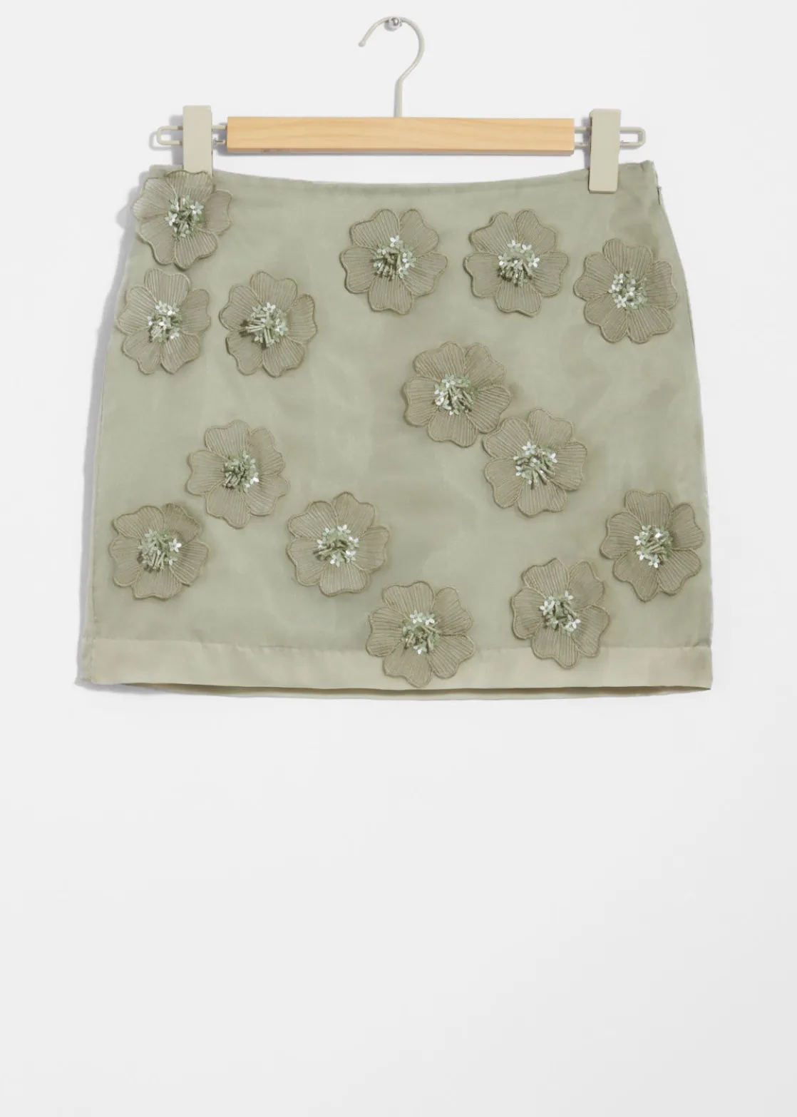 Mini skirt with a textured finish. Fastened with a zipper at the side.
