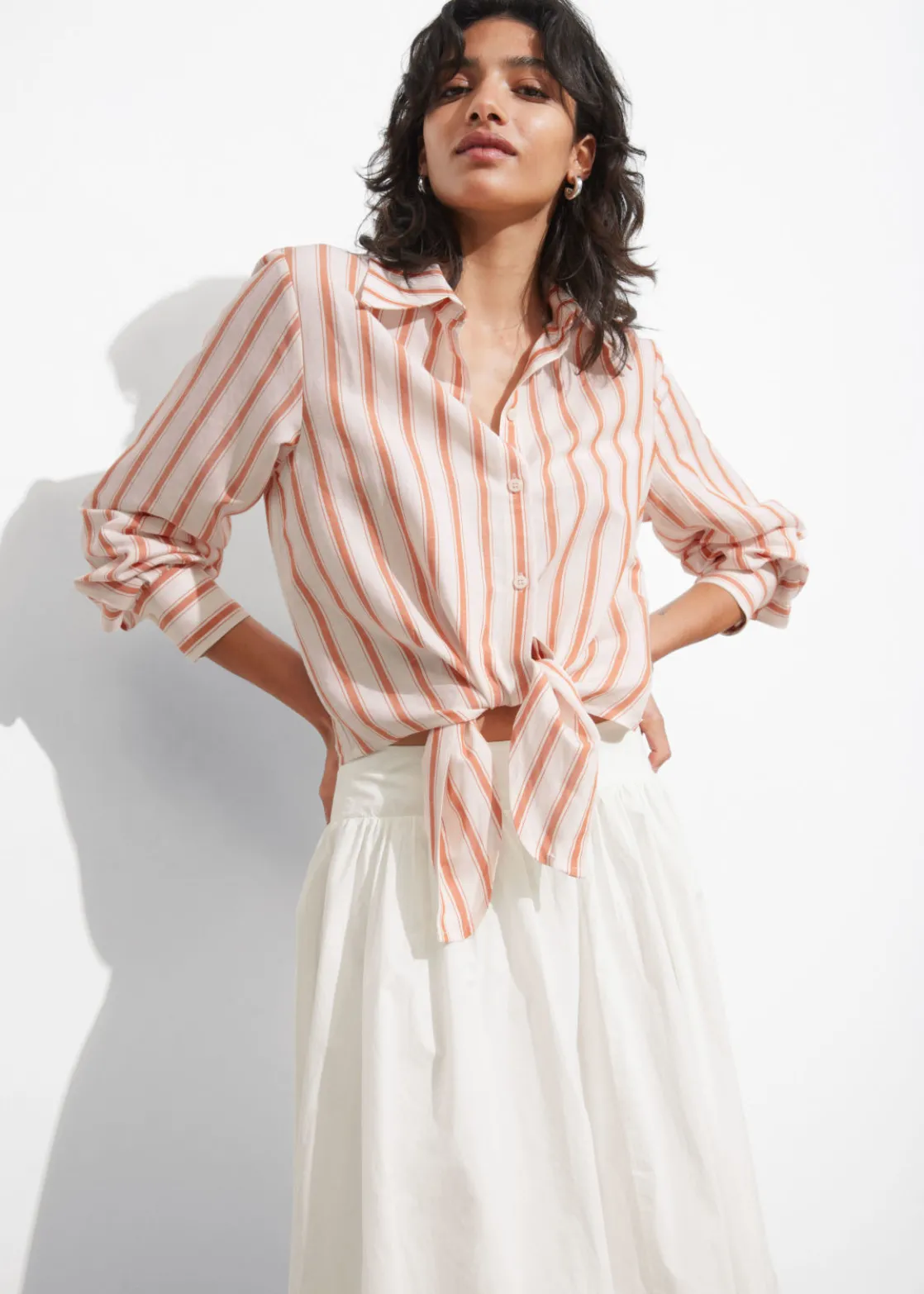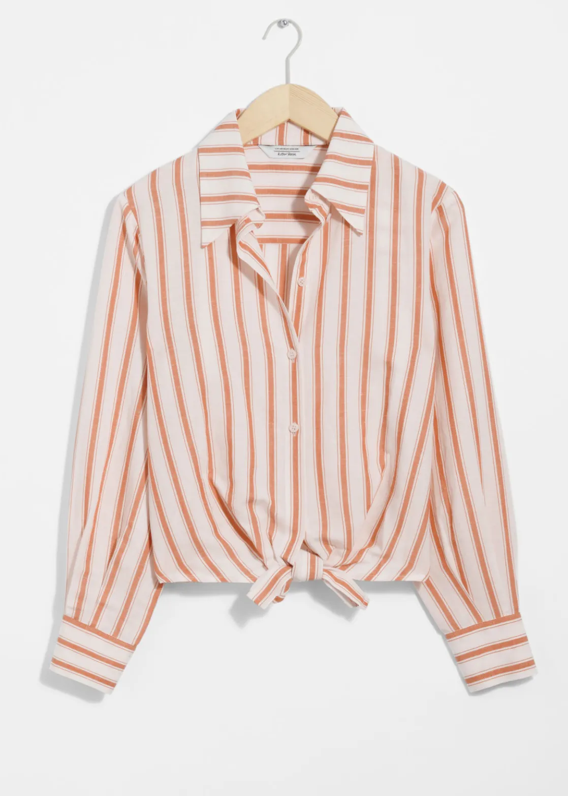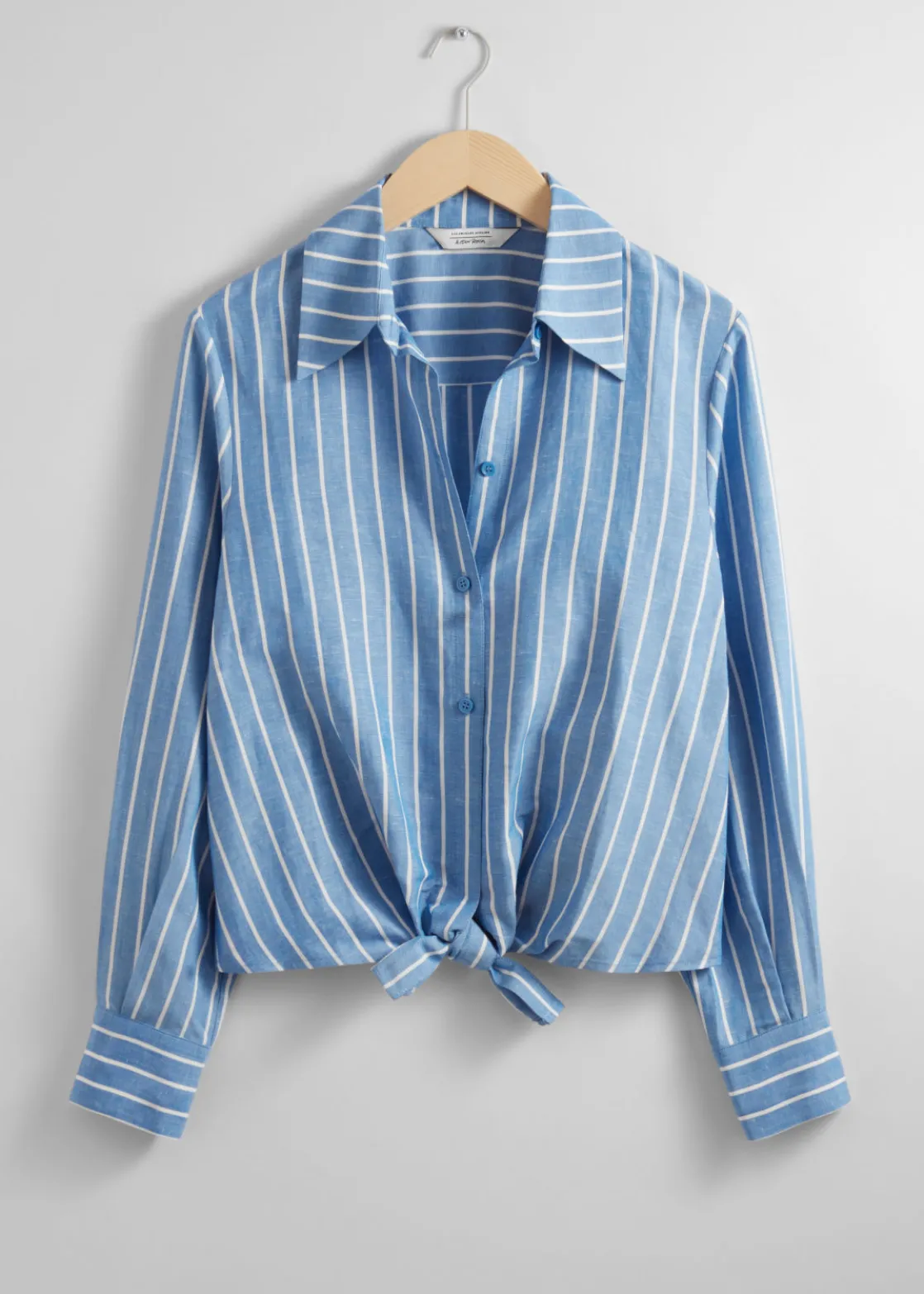 Long-sleeve shirt finished with tonal ties at the hem that knot into a neat bow.