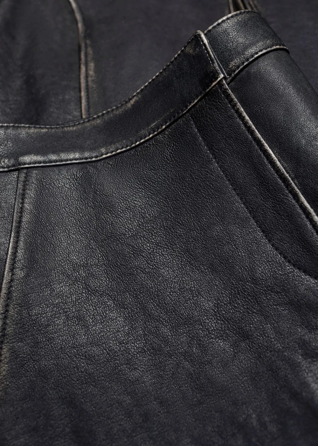 Leather mini skirt detailed with duo welt pockets at the front.