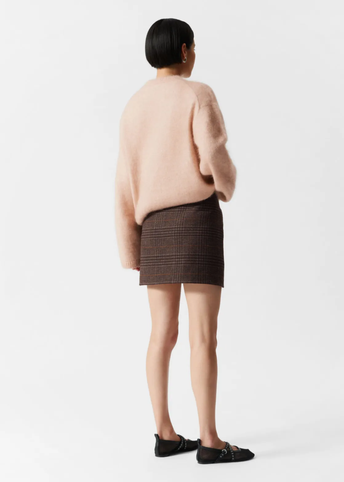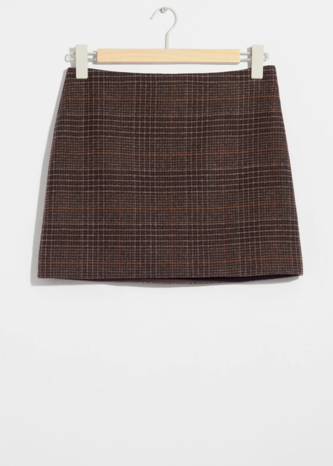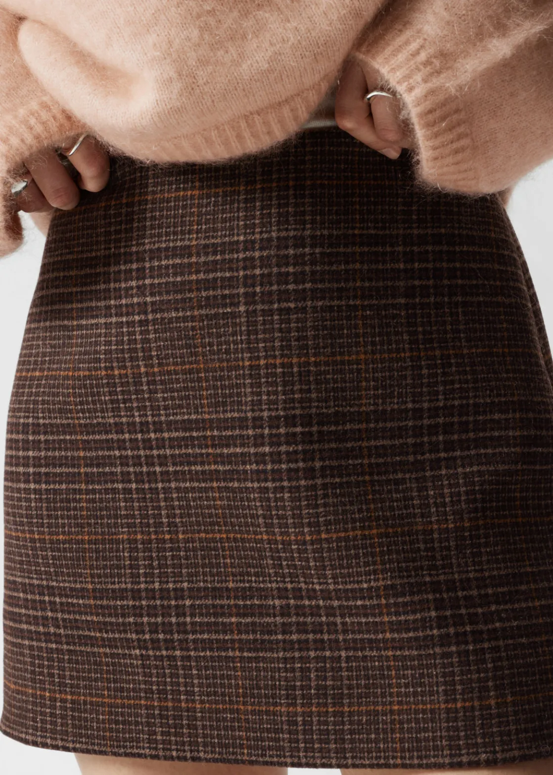 Tweed mini skirt crafted from a wool blend. Fastened with a zipper at the side.