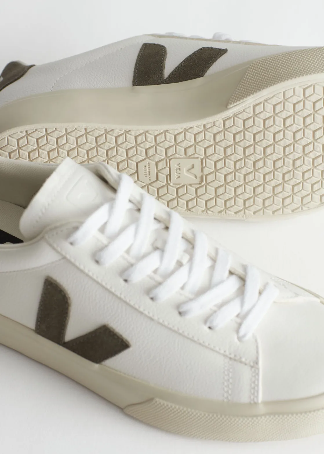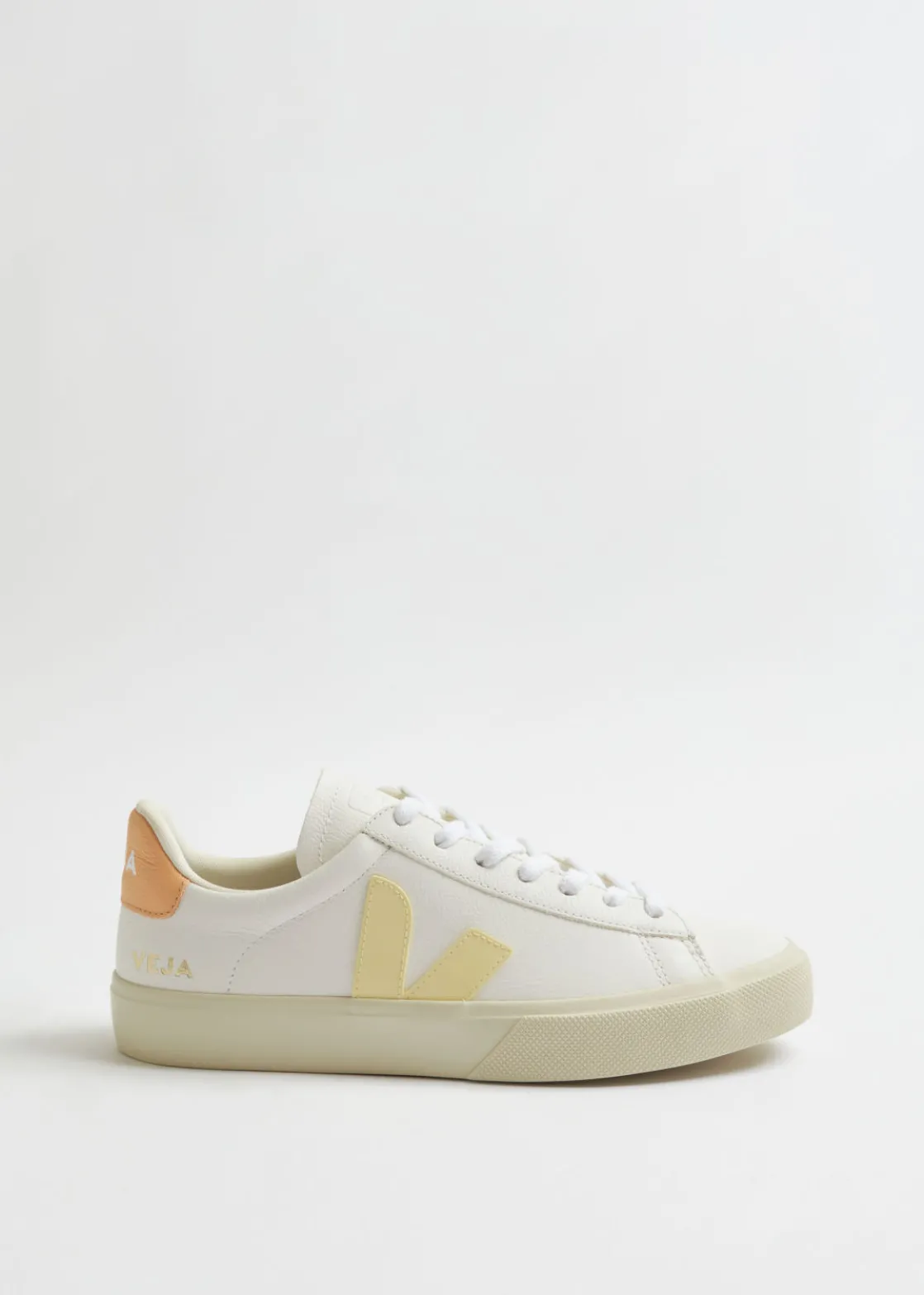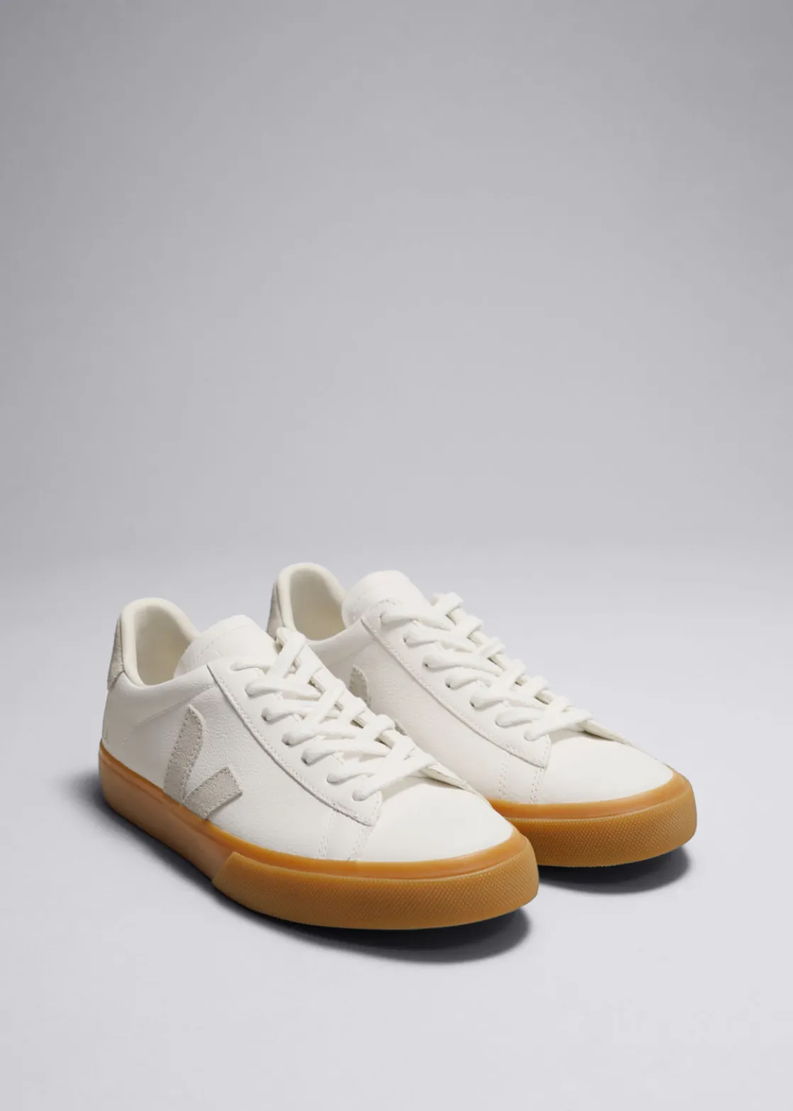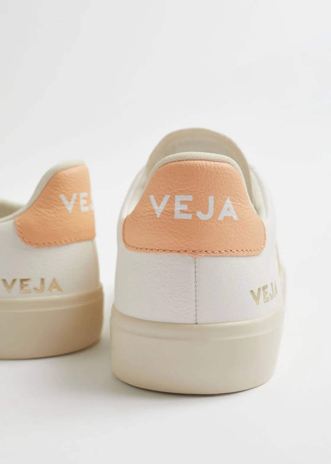 Veja ‘Campo’ sneakers in chrome-free tanned leather. Featuring contrasting color-blocked accents, a rubber sole and classic side ‘V’ branding.