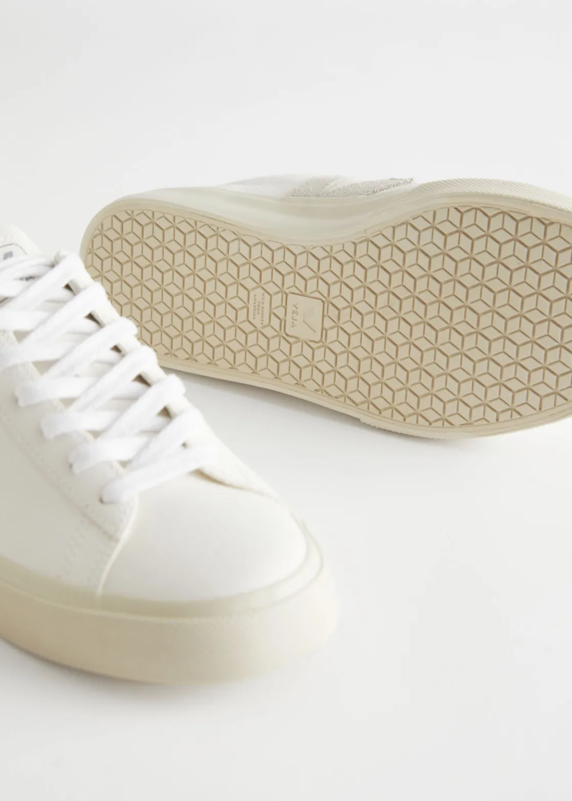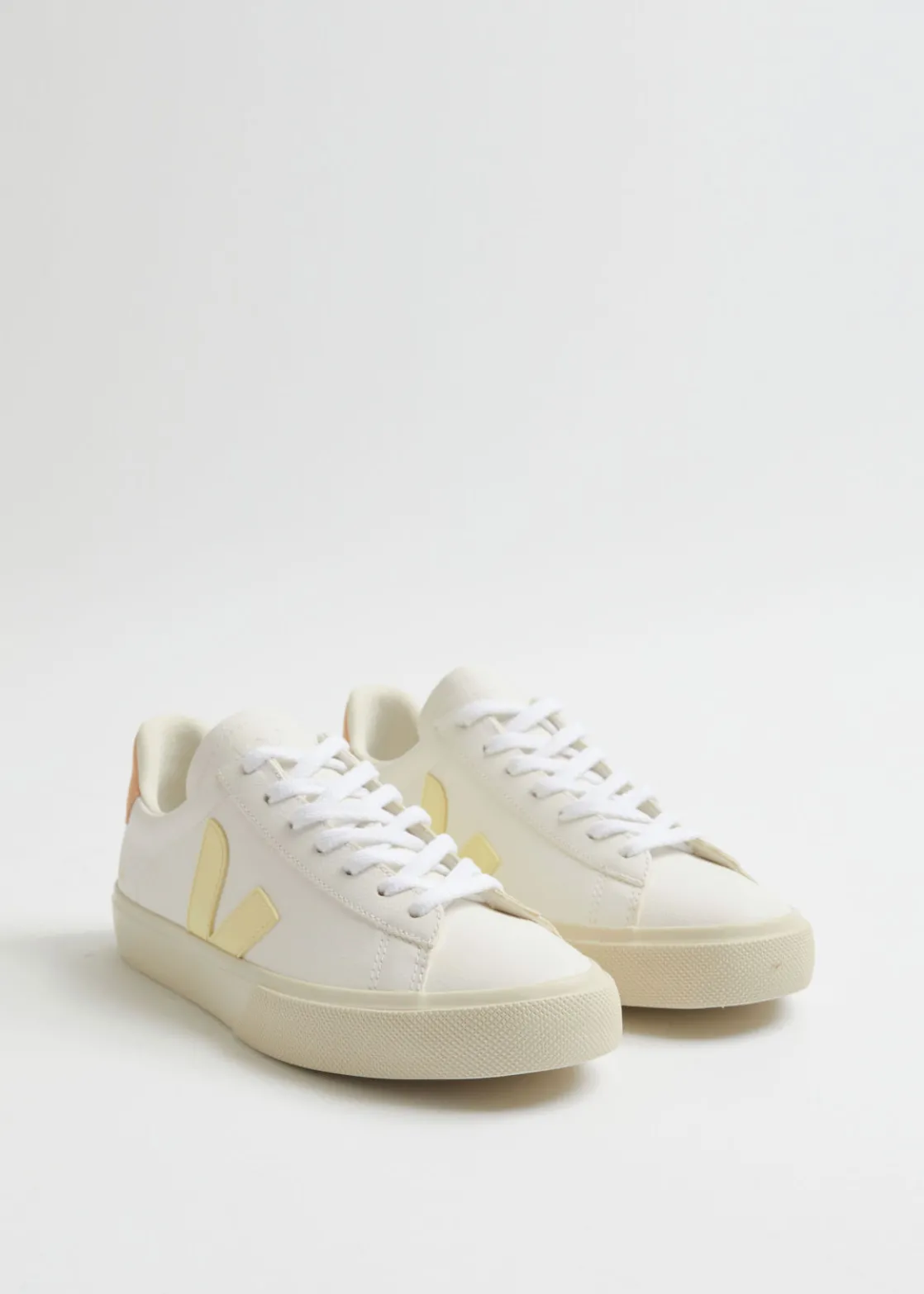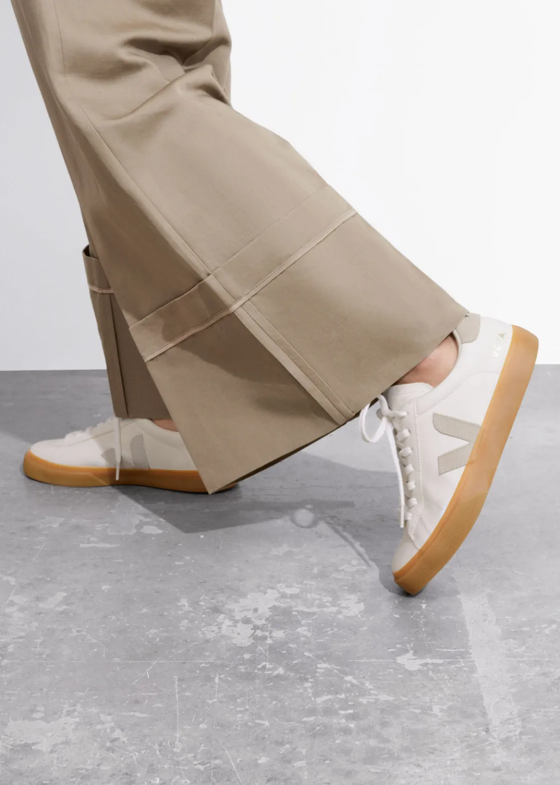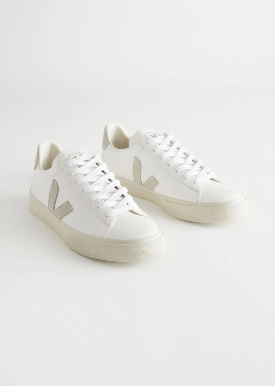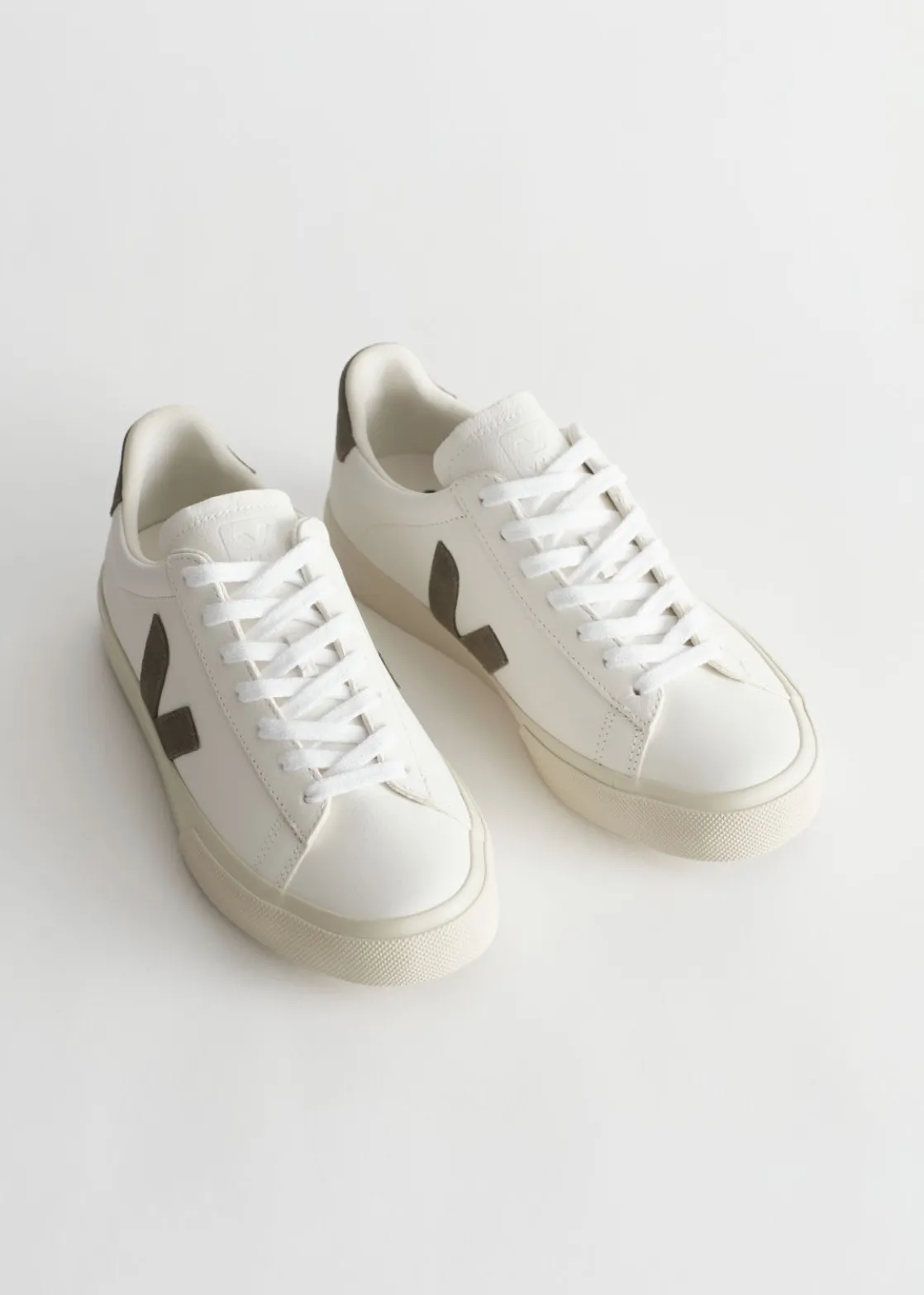 Veja ‘Campo’ sneakers in chrome-free tanned leather. Featuring contrasting color-blocked accents, a rubber sole and classic side ‘V’ branding.