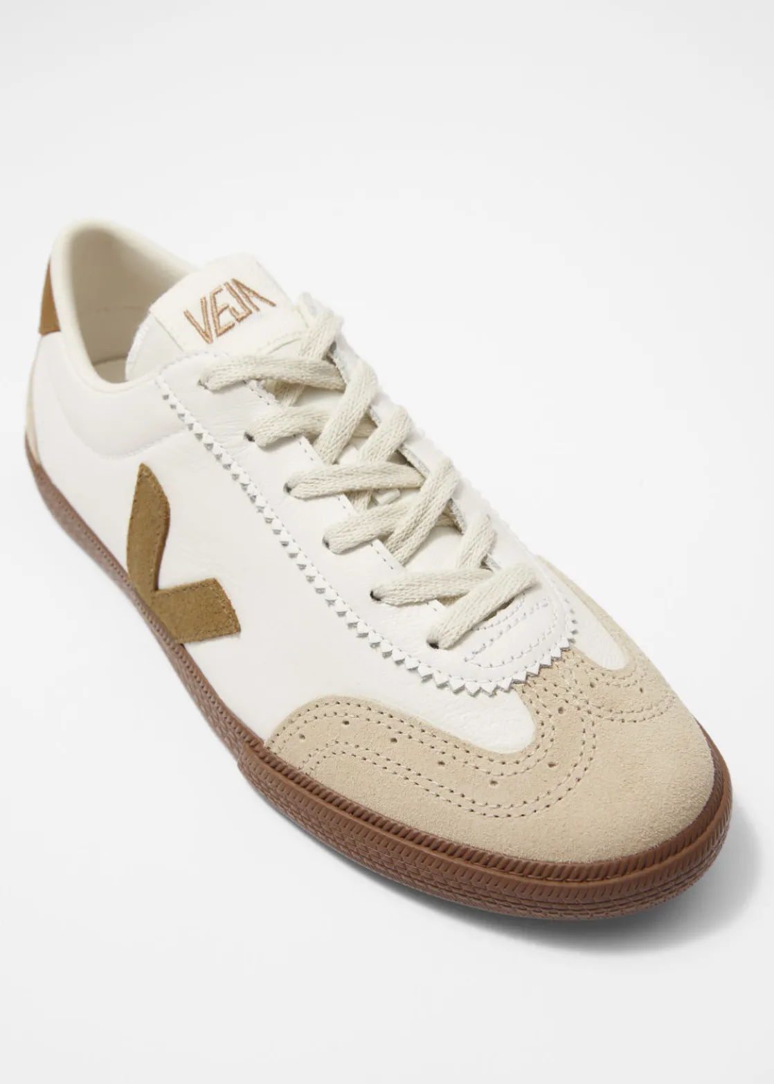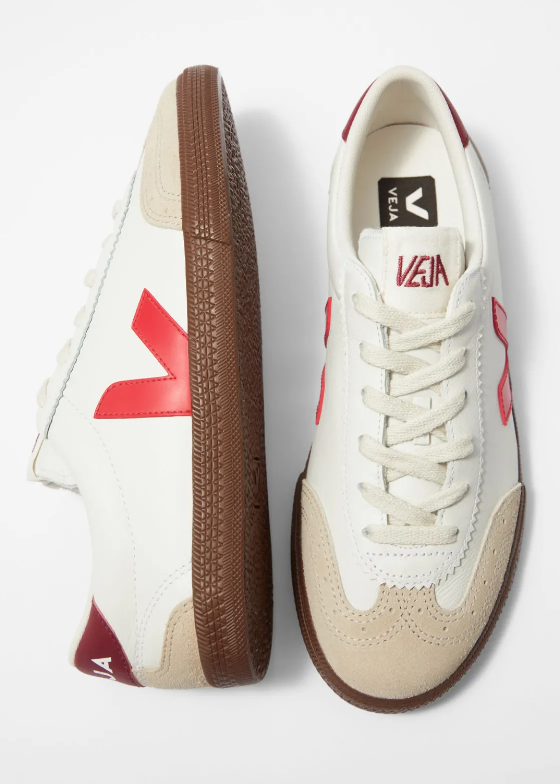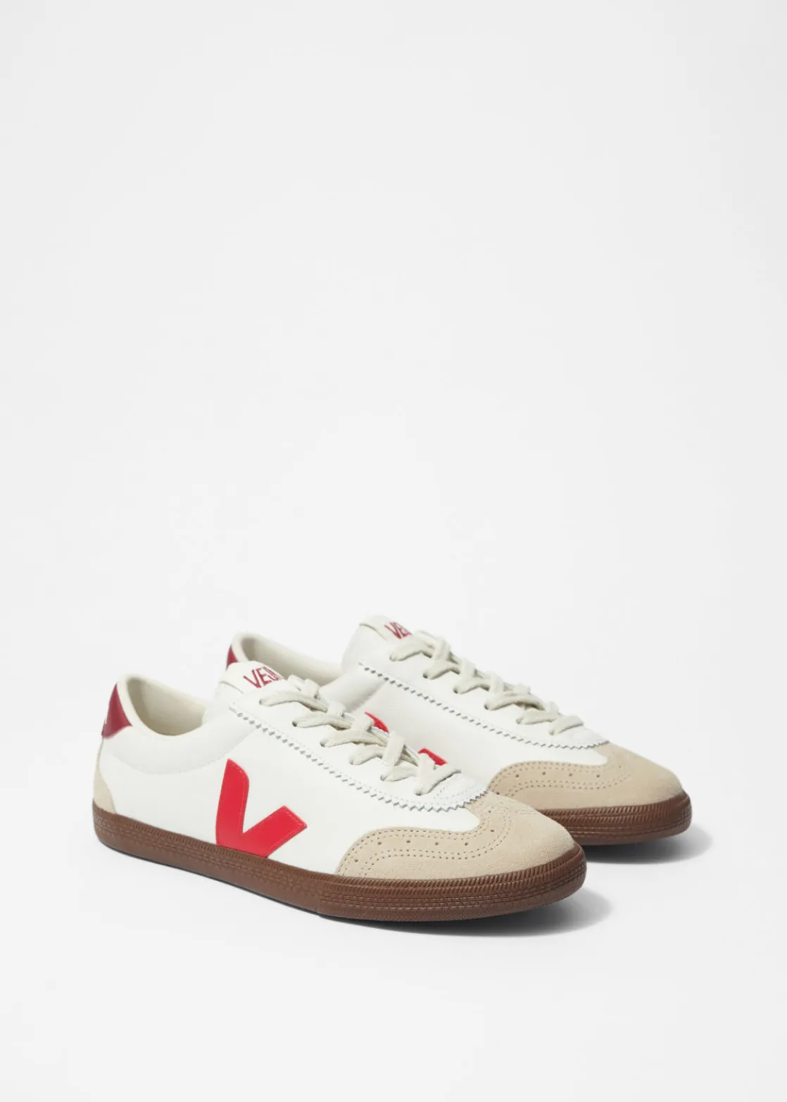 Veja’s ‘Volley’ sneakers take cues from popular styles of the ’70s. Made from supple leather, they’re trimmed with beige suede and feature the iconic ‘V’ logos at the center. The padded collars and tongue ensure a comfortable fit.