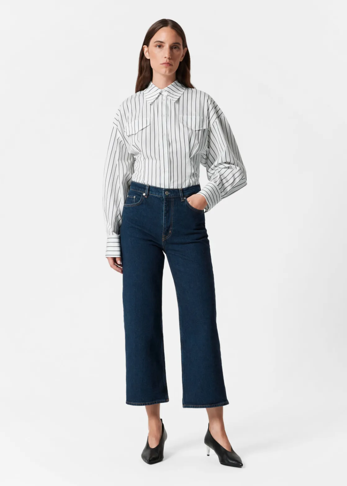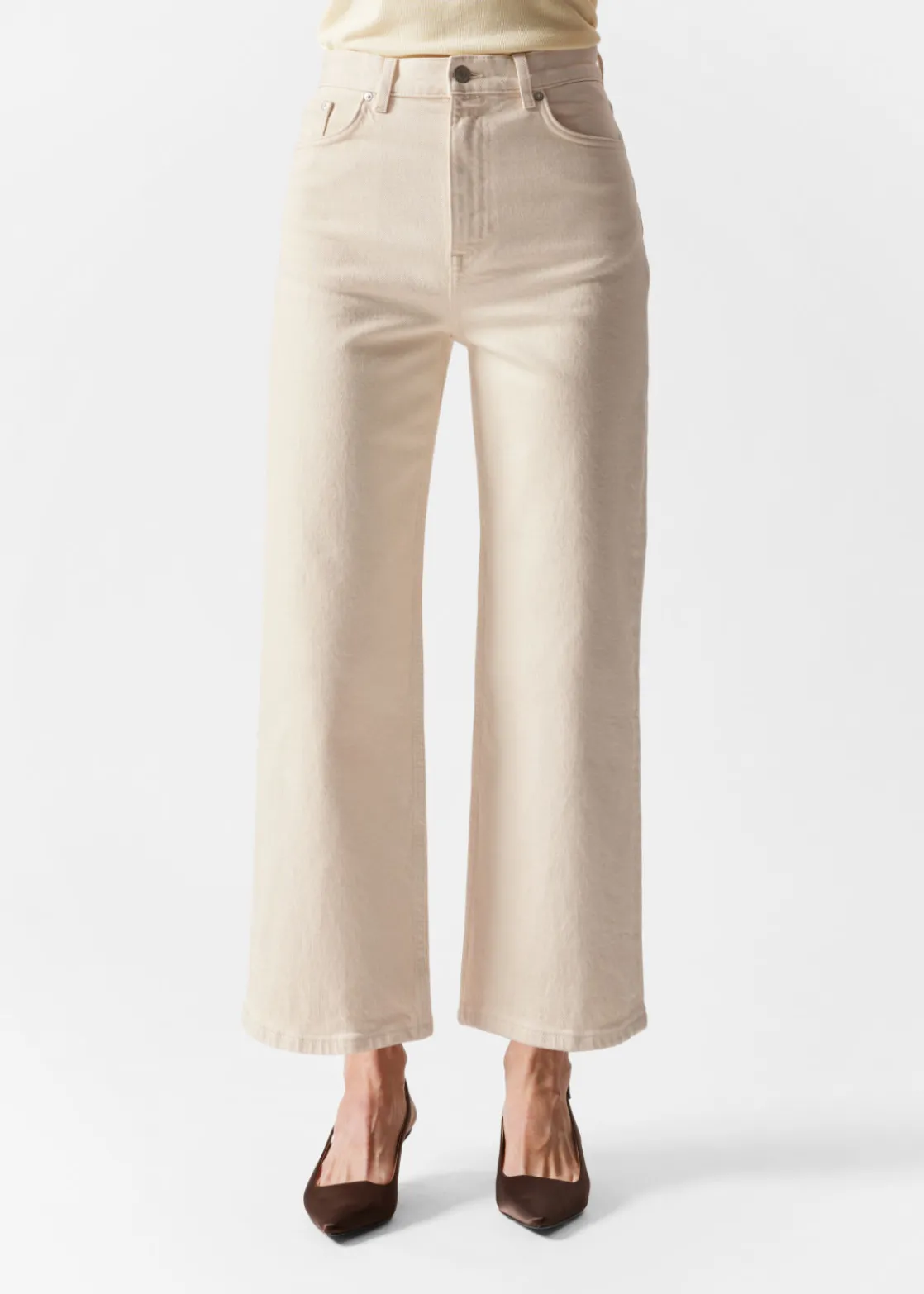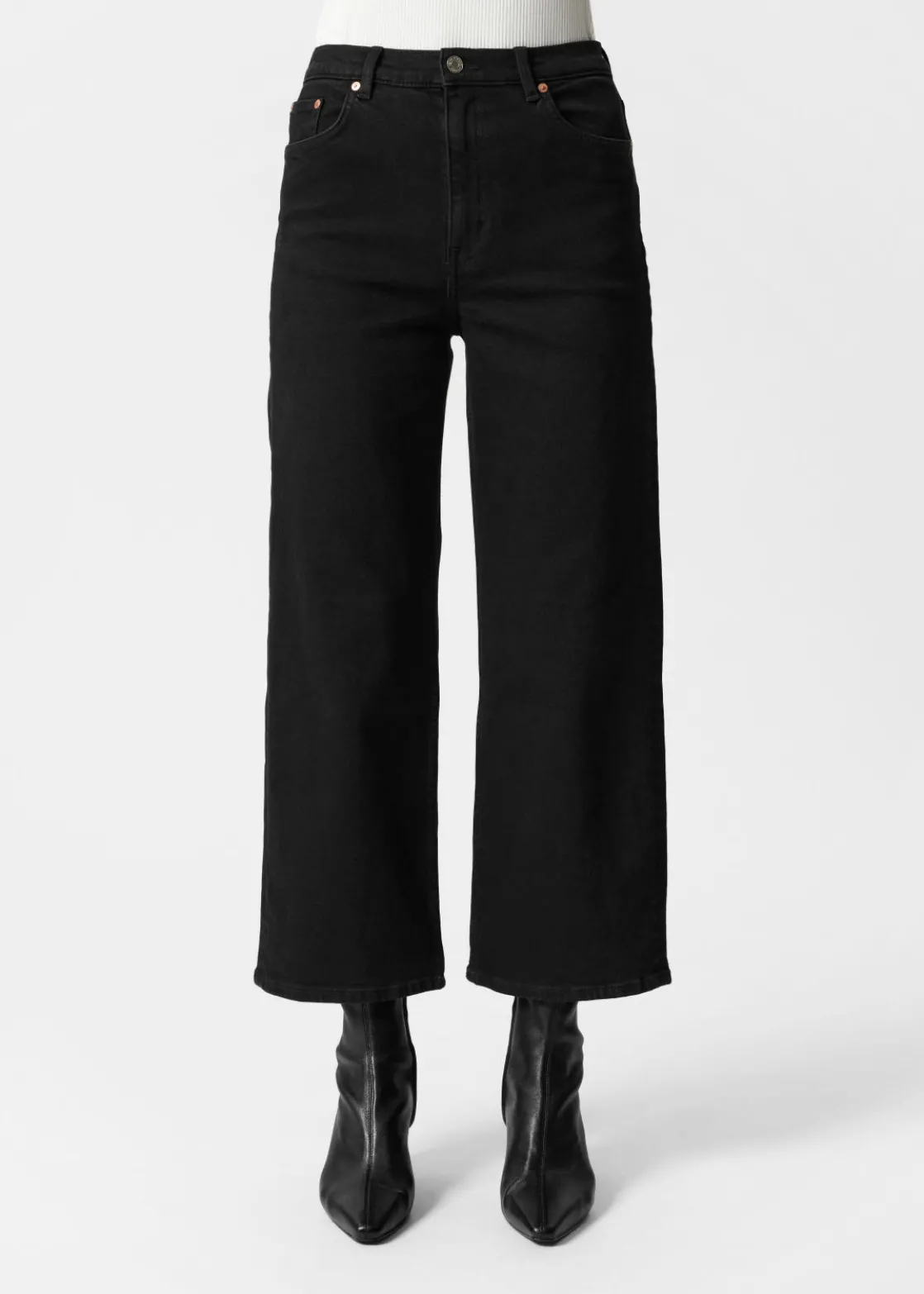 A wardrobe saviour that goes great with any look and any mood, these 5-pocket jeans feature a high waist and a wide, cropped leg.
