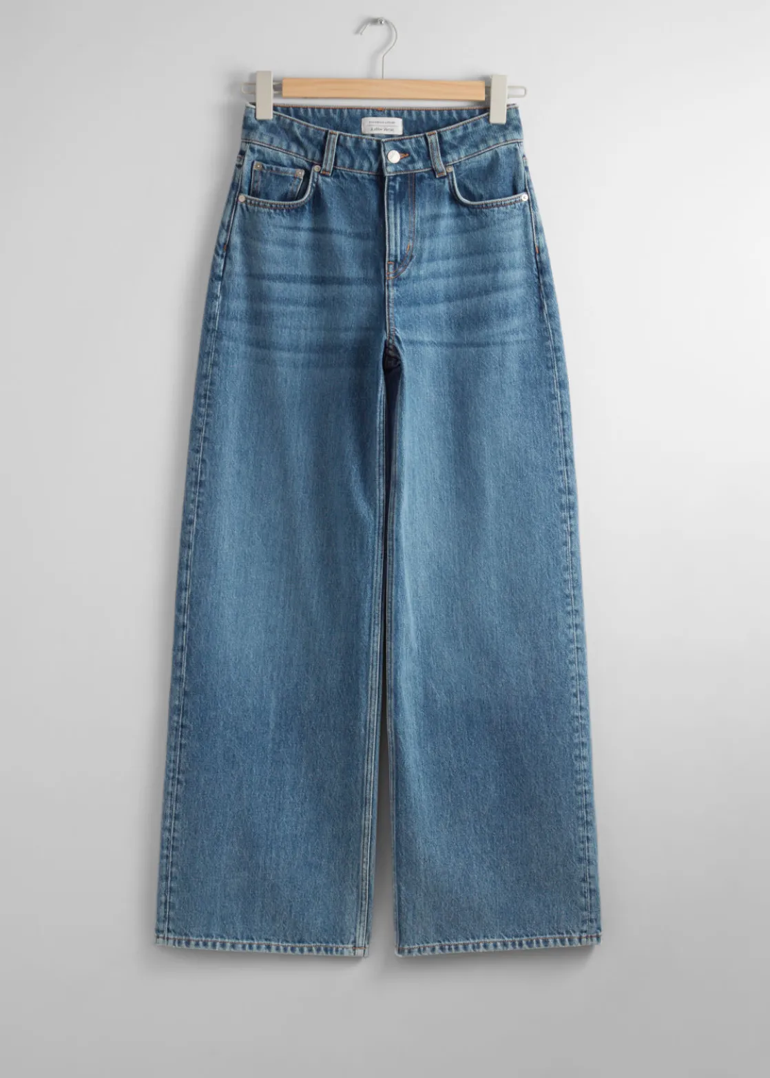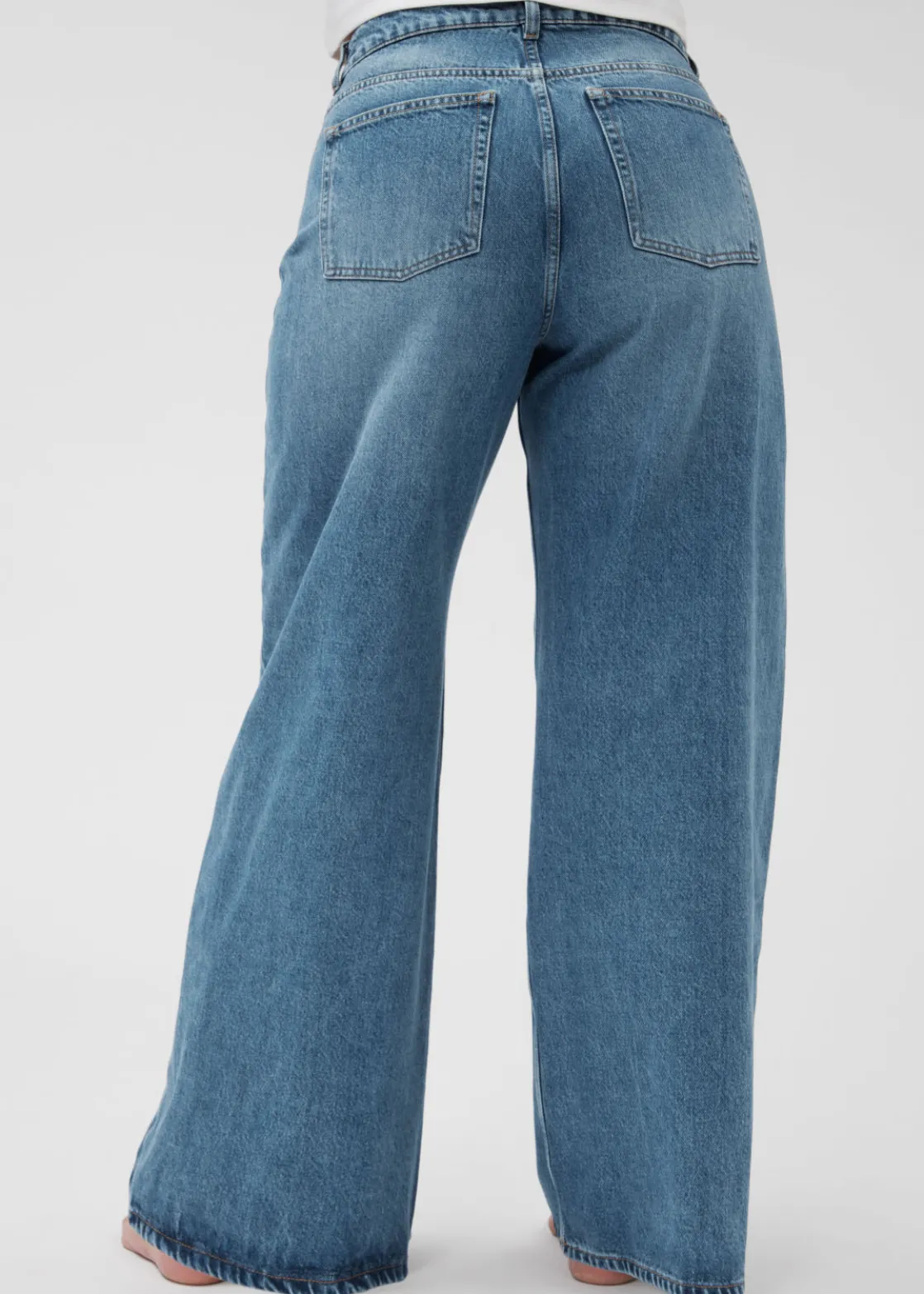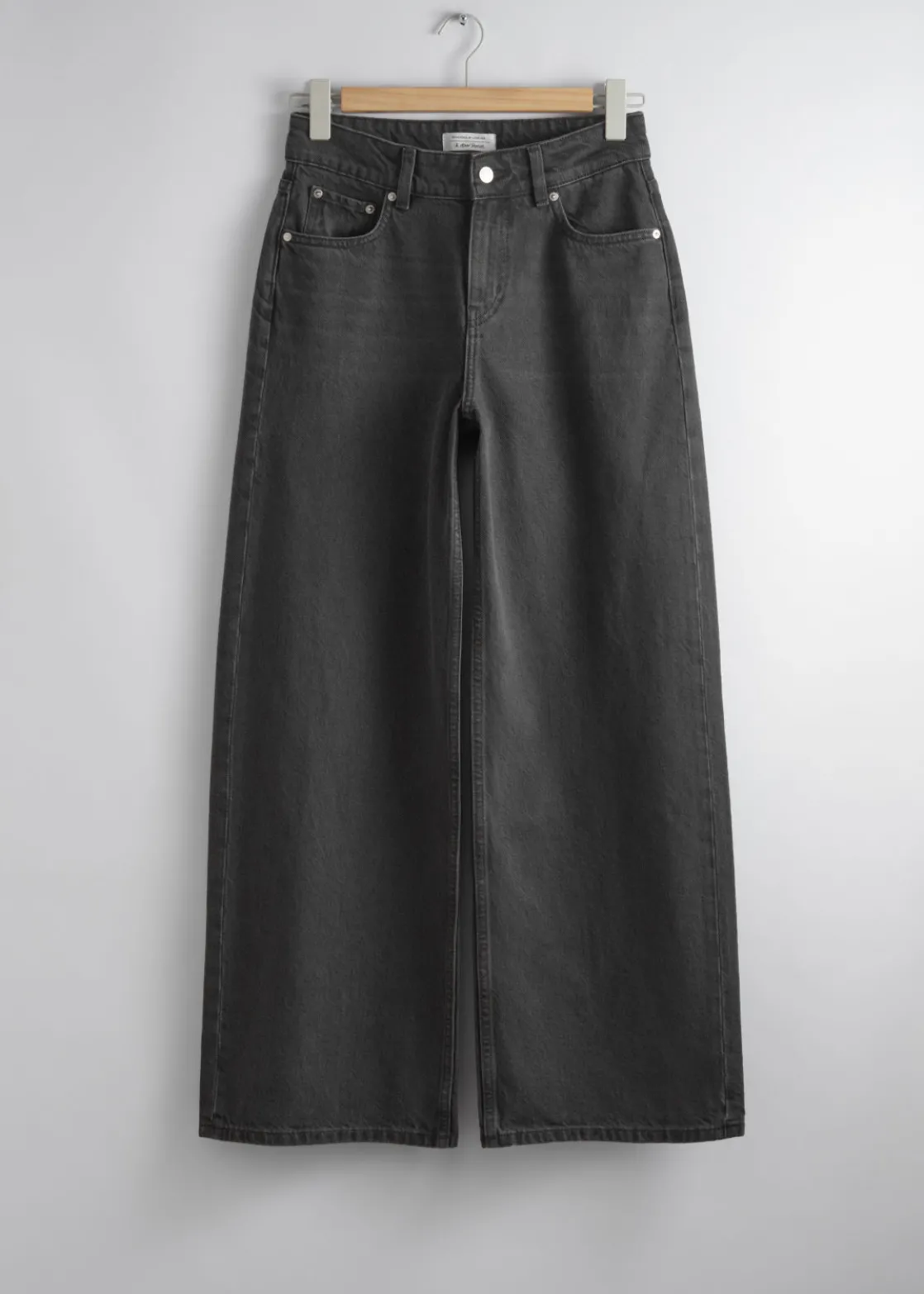Jeans featuring a wide, long silhouette and a classic 5-pocket denim finish.