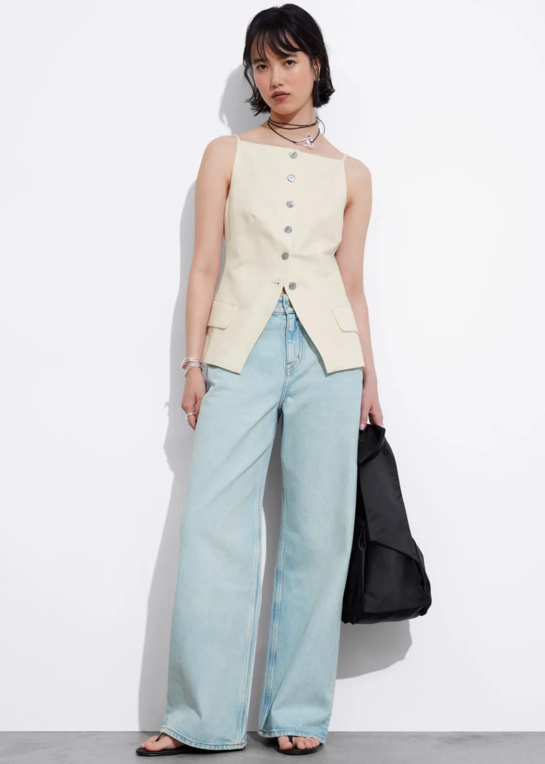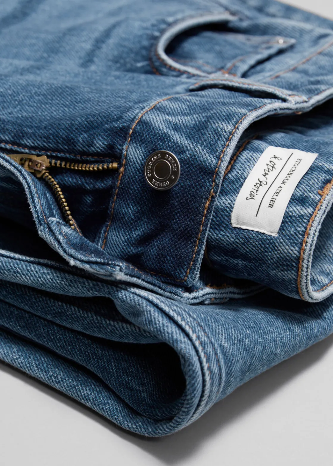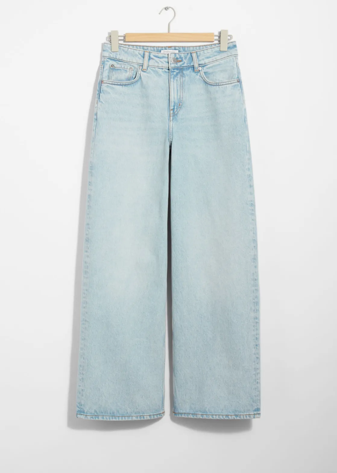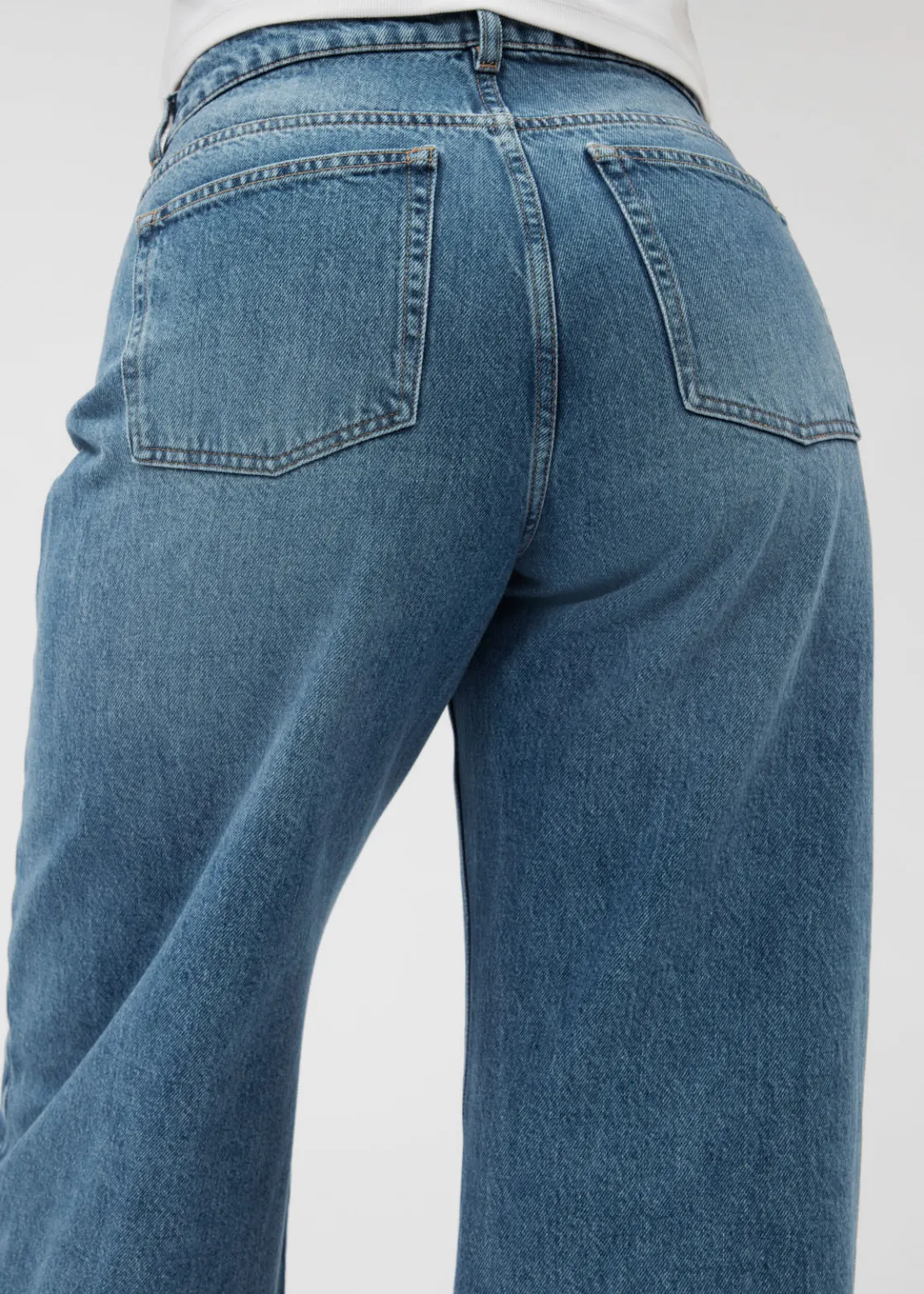 Jeans featuring a wide, long silhouette and a classic 5-pocket denim finish.