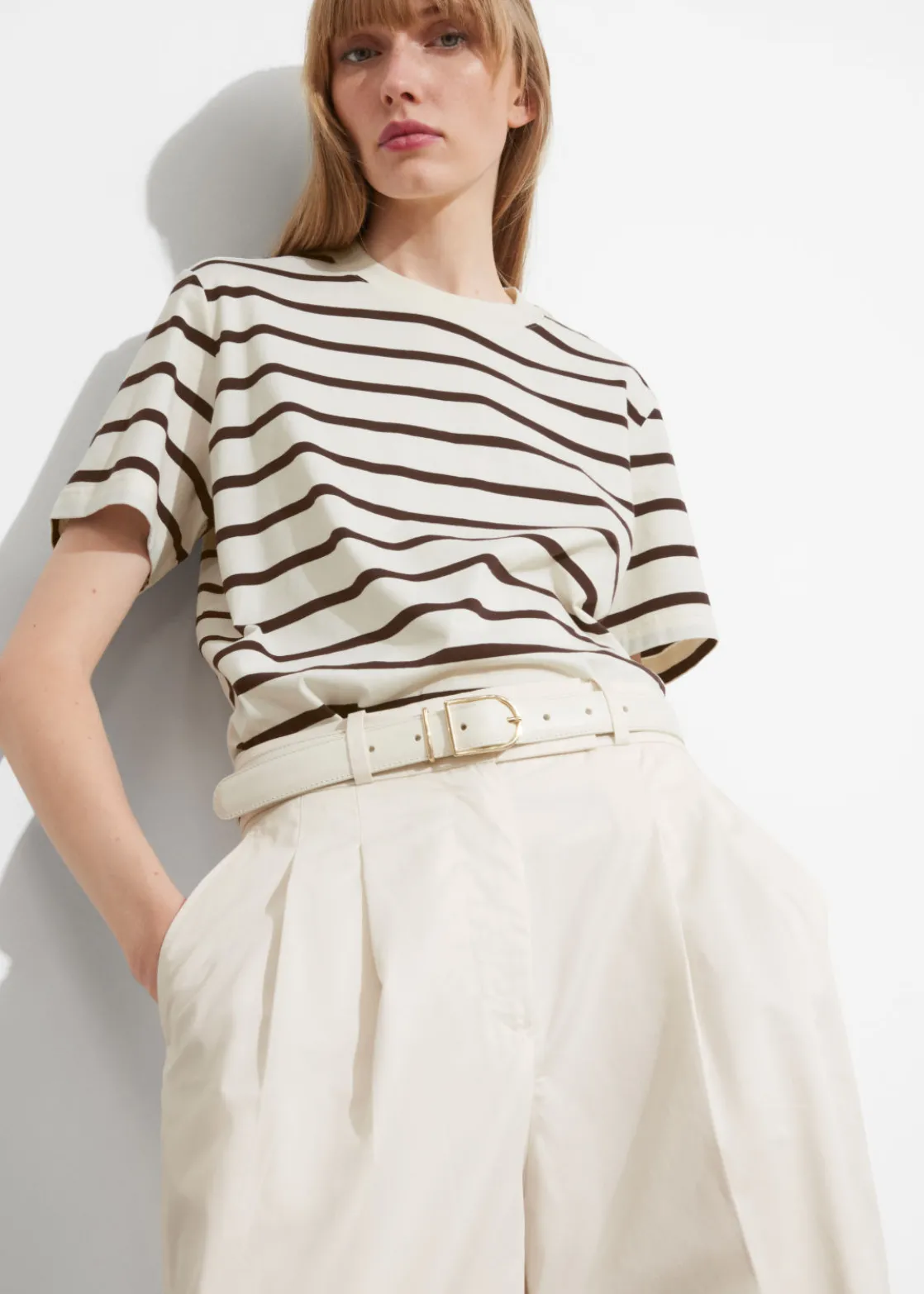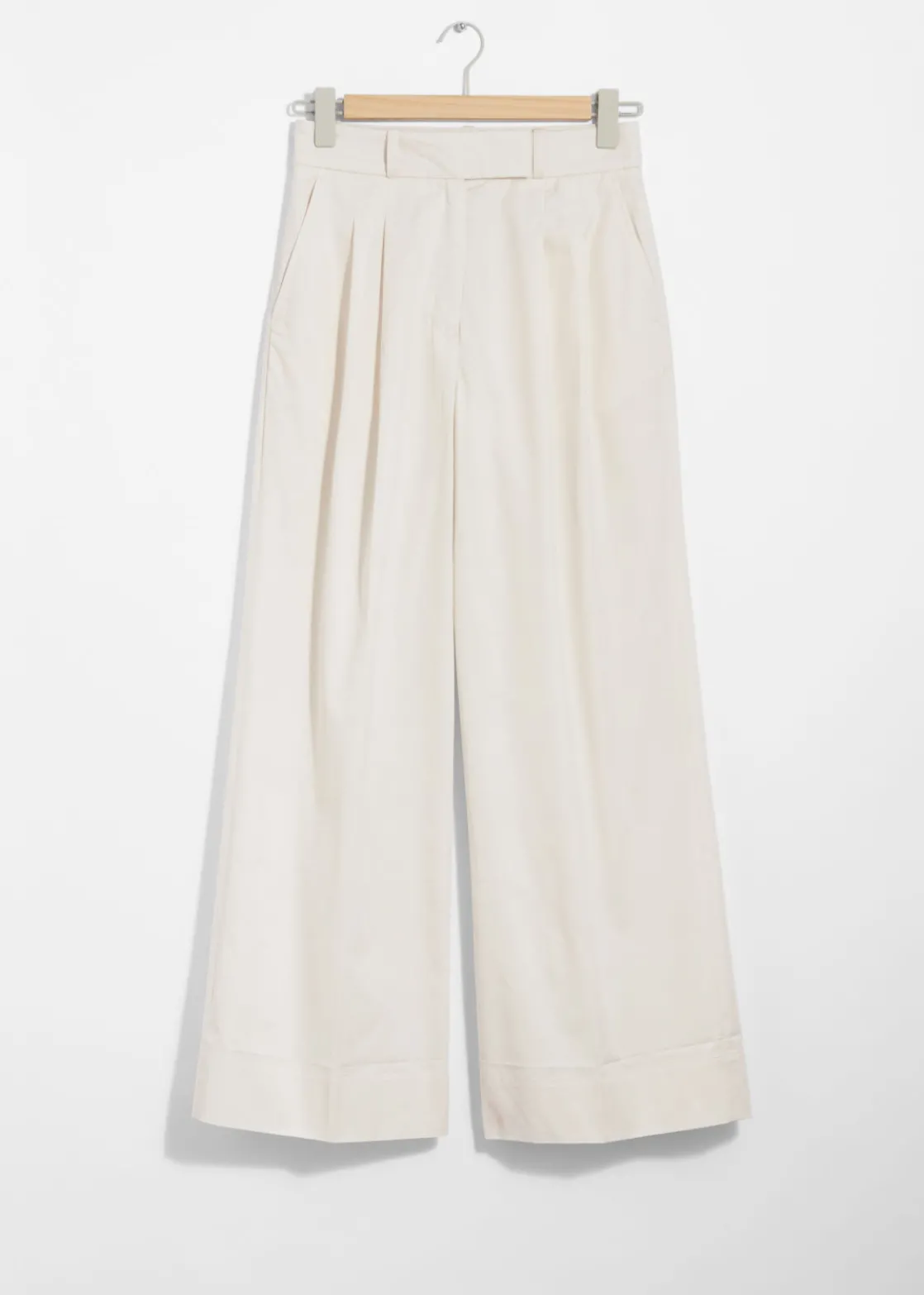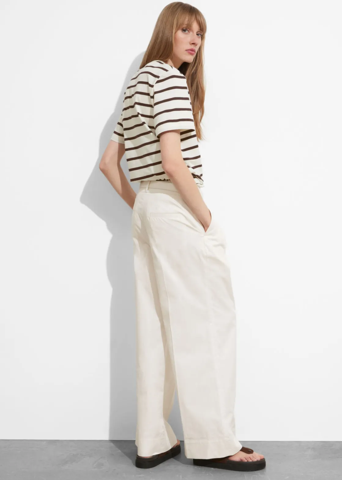 Tailored trousers featuring a wide leg, press creases and duo slanted pockets